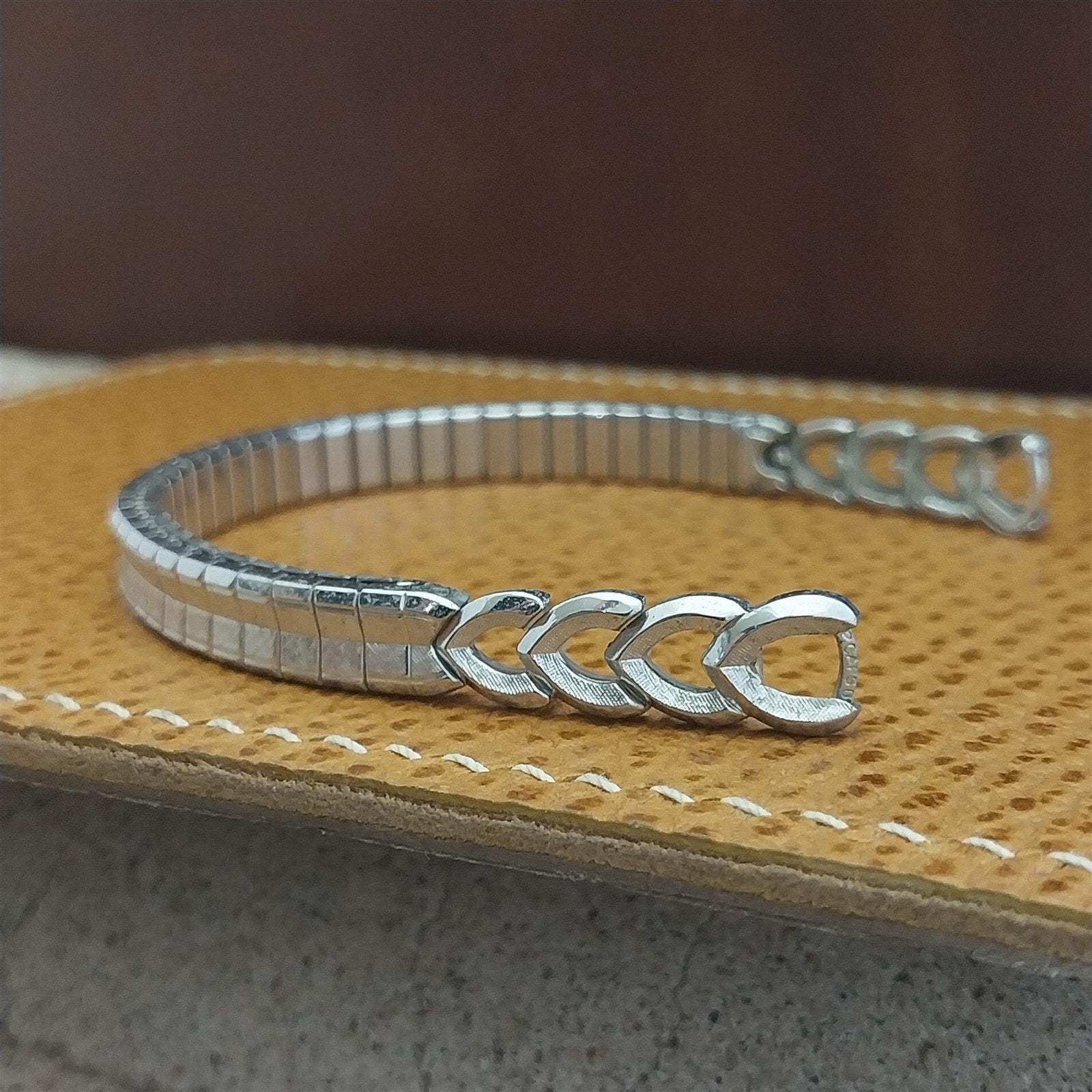 - NOS unused 1960s old-stock Speidel String of Hearts 10k white gold-filled expansion watch bracelet.