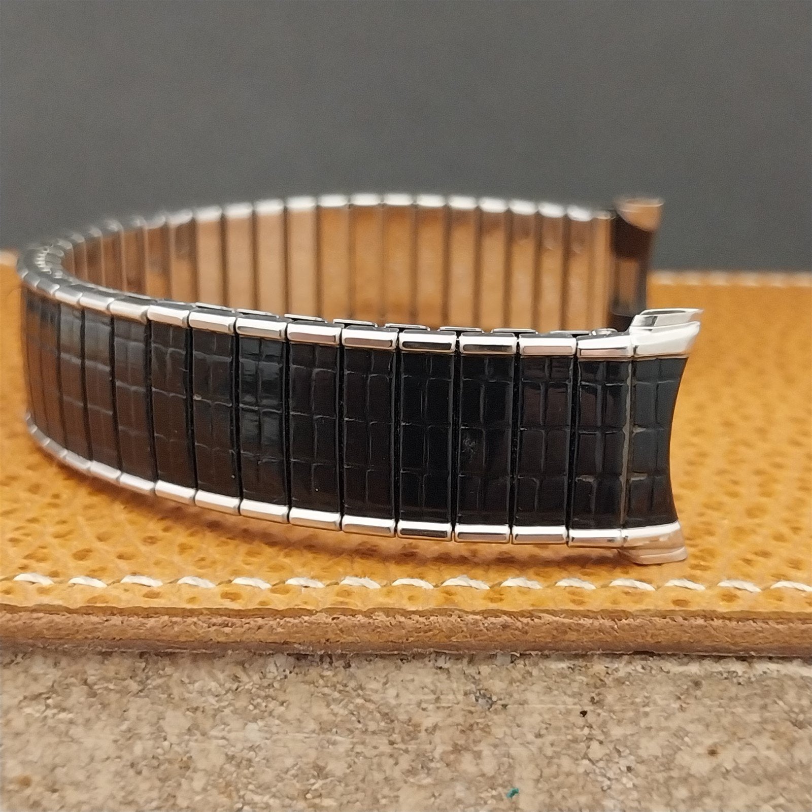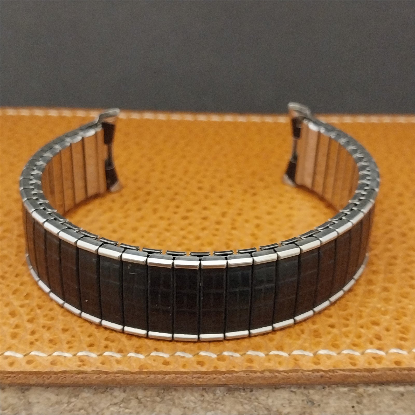 - NOS unused 1970s old-stock Speidel black and stainless steel Romunda expansion watch bracelet.