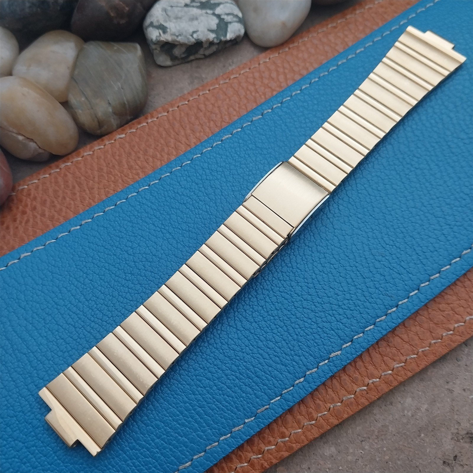 - NOS unused old-stock Speidel USA made Seiko yellow gold-tone watch bracelet.