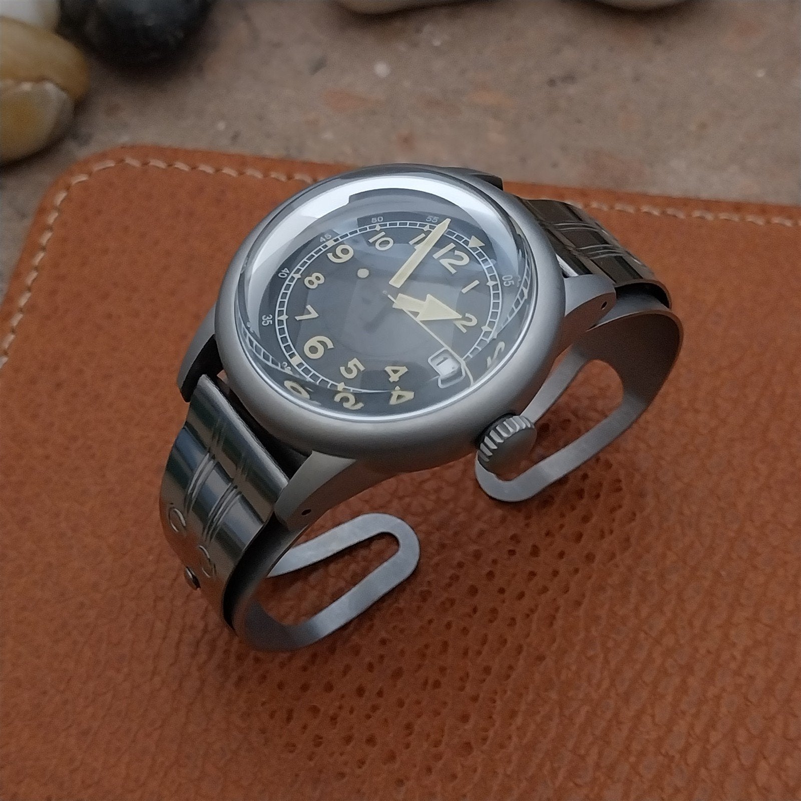 - New Don Juan Service Model Stainless Steel cuff field watch band & military style watch.