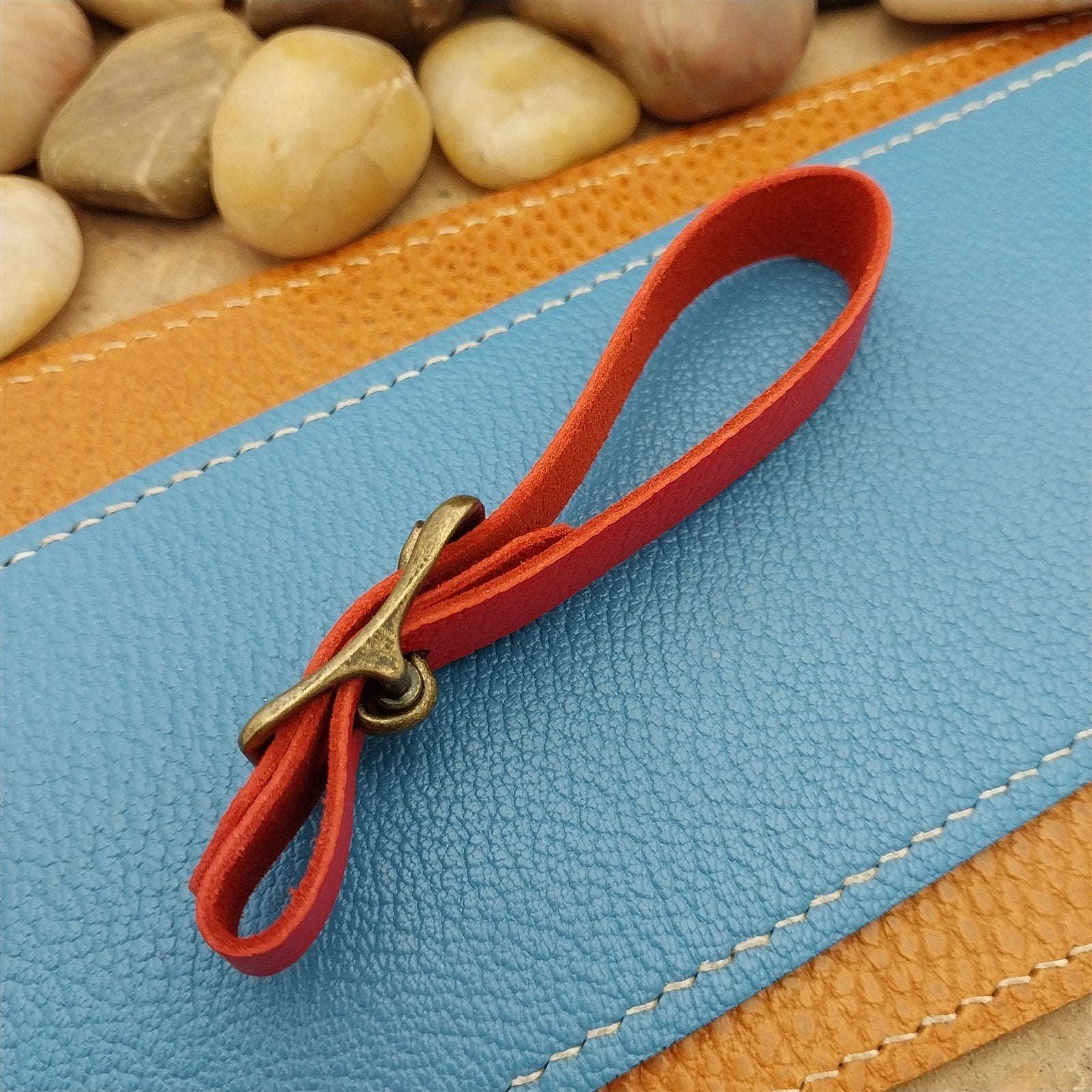 - Red French Alran Chevre Chagrin Sully goatskin leather fob strap.