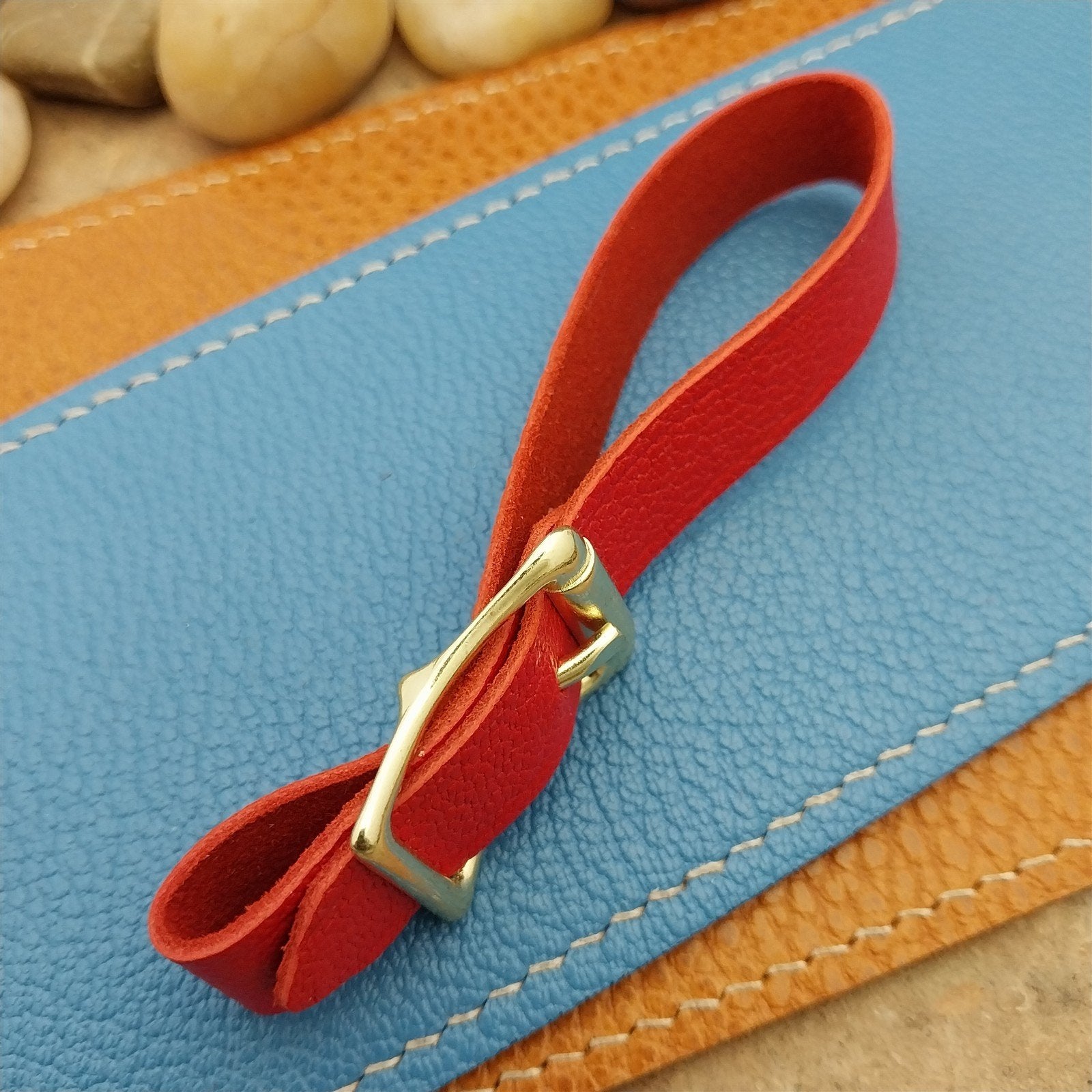 Red French Goatskin Vintage Pocket Watch Fob Strap &Polished Brass Finish Buckle