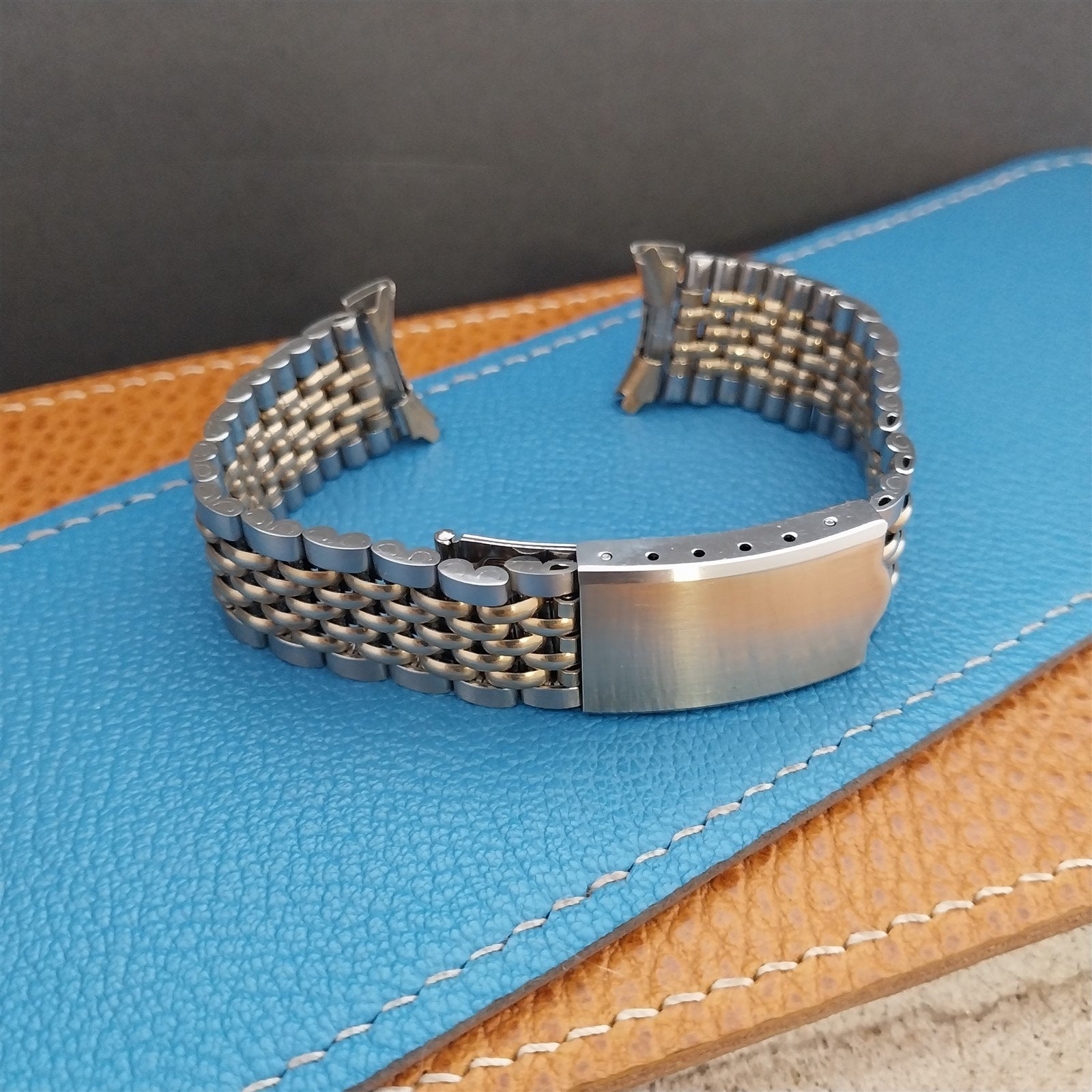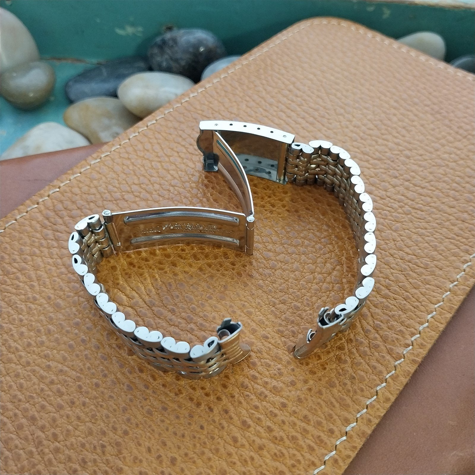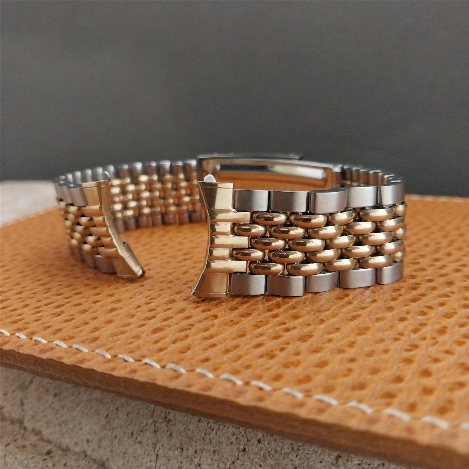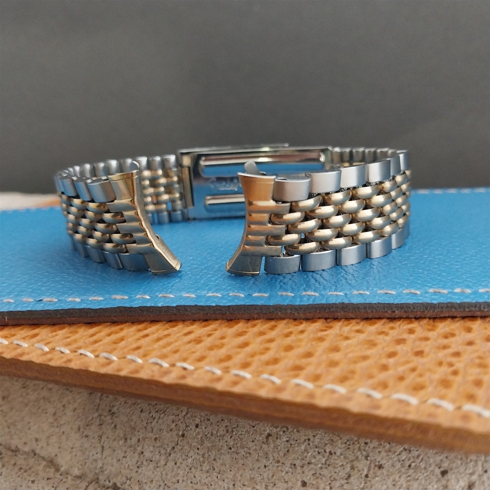 - NOS unused 1960s-1970s old-stock Speidel Japan stainless steel & yellow rolled gold-plate (the same process as gold-fill) beads of rice deployment watch bracelet.