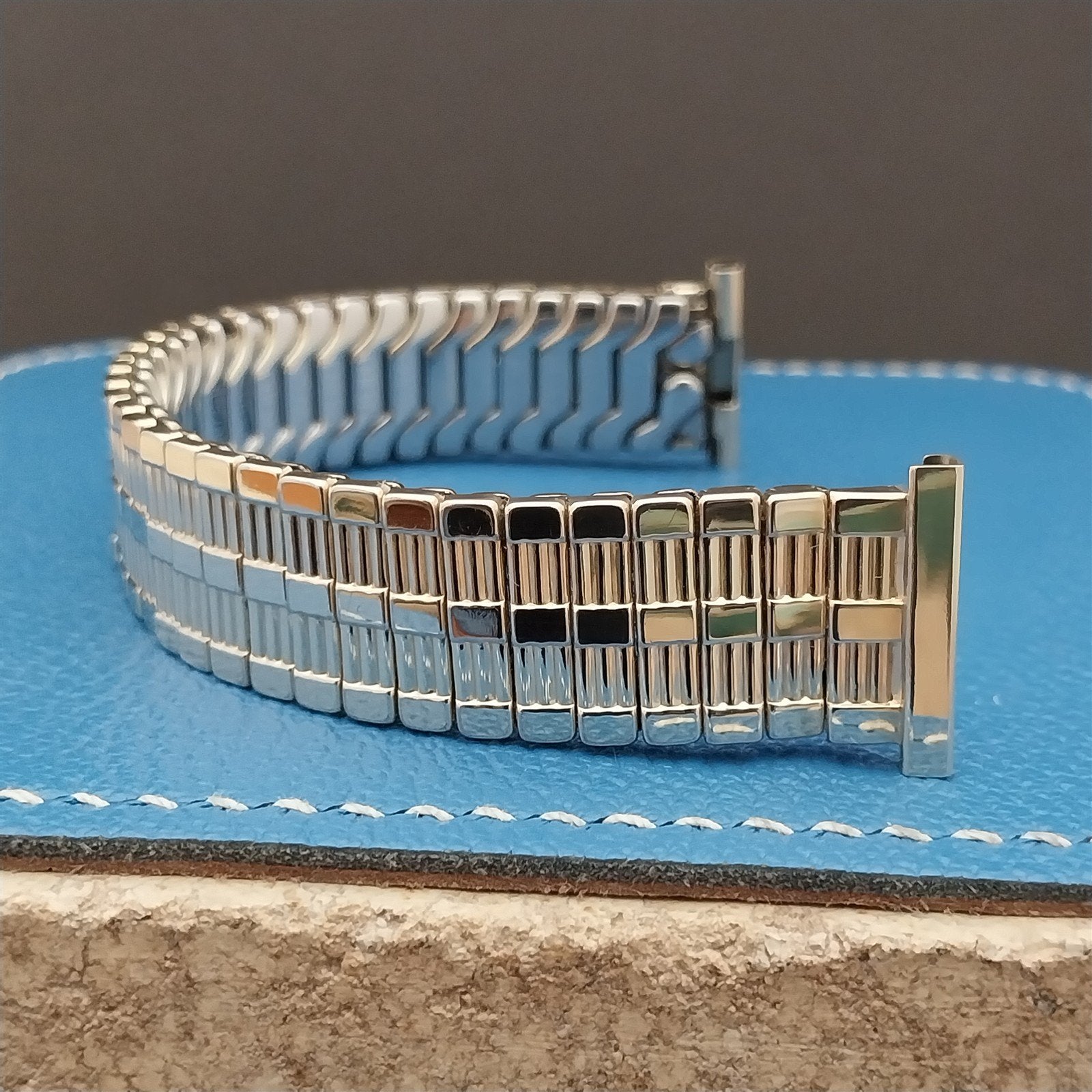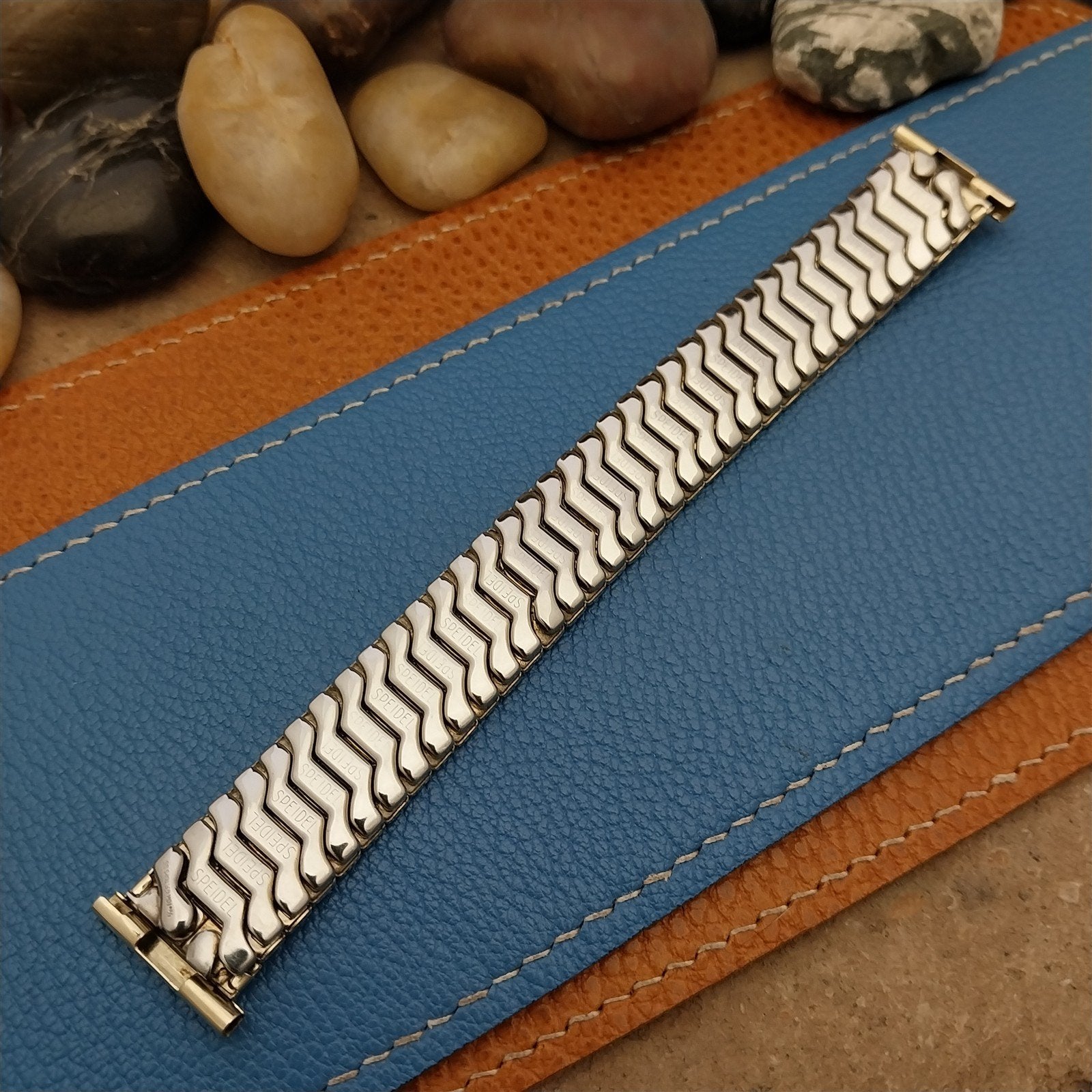 - NOS unused old-stock 1955 Speidel Aztec 10k yellow gold filled scissor-expansion watch bracelet.