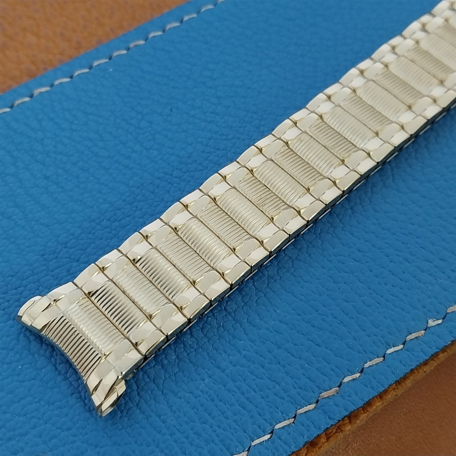 - NOS unused old-stock 1968 Speidel Colossus 10k yellow gold-filled expansion watch band.