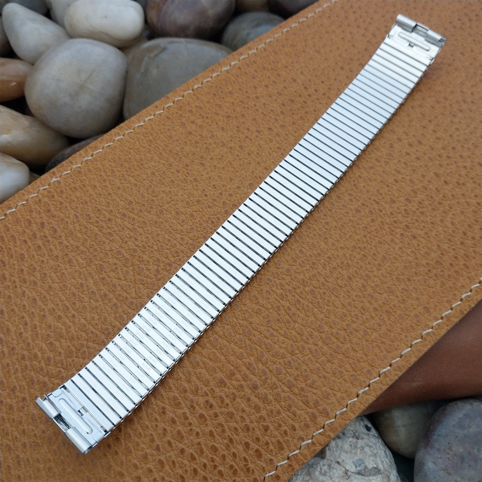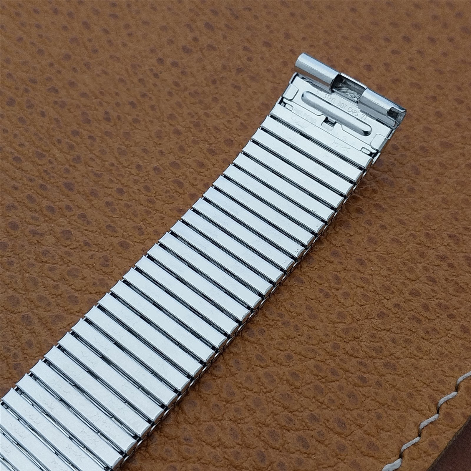 - NOS unused old-stock 1970s Speidel 1/20 10k white gold-filled Thinline expansion watch bracelet.