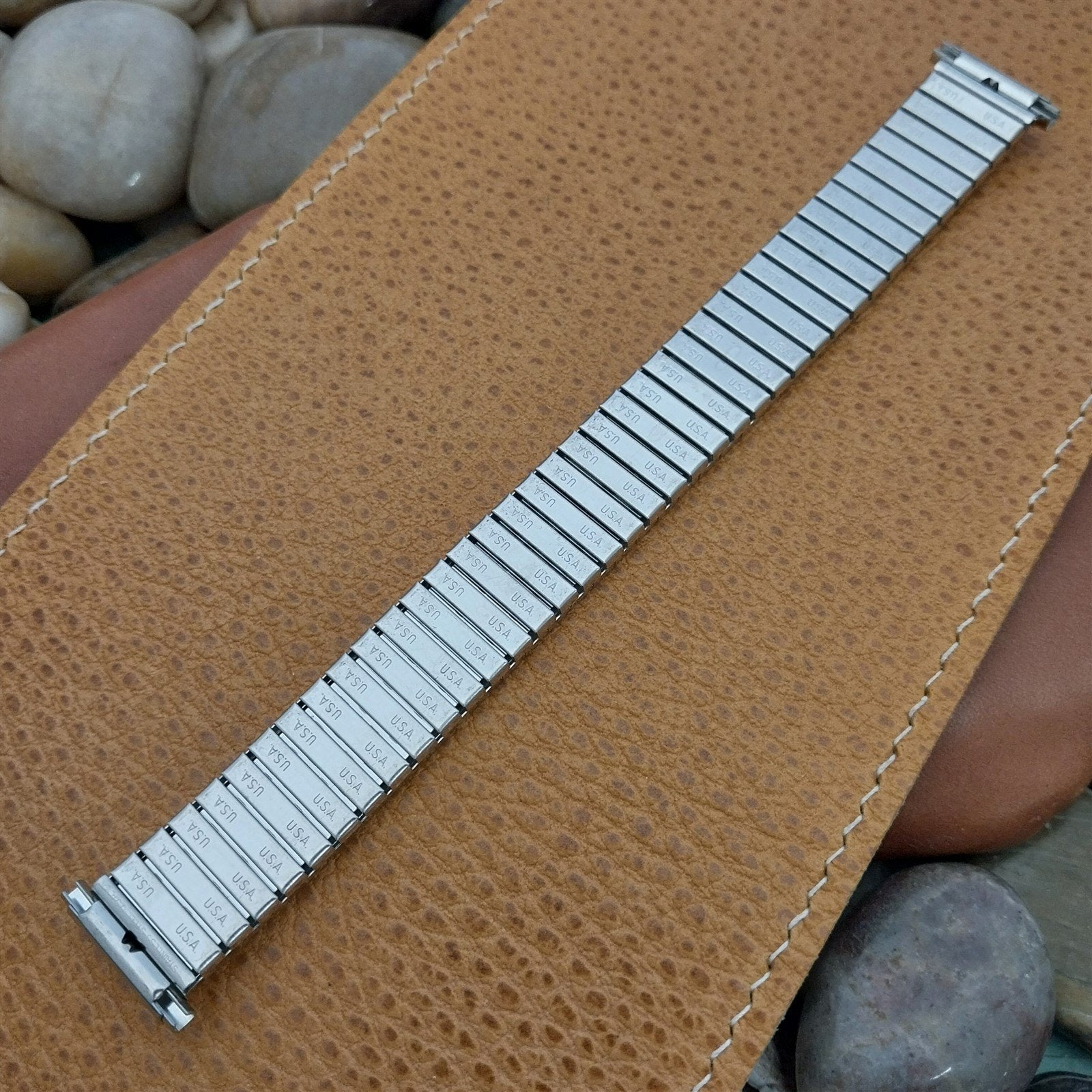 - NOS unused 1970s old-stock Speidel stainless steel Twist-o-flex expansion watch bracelet.