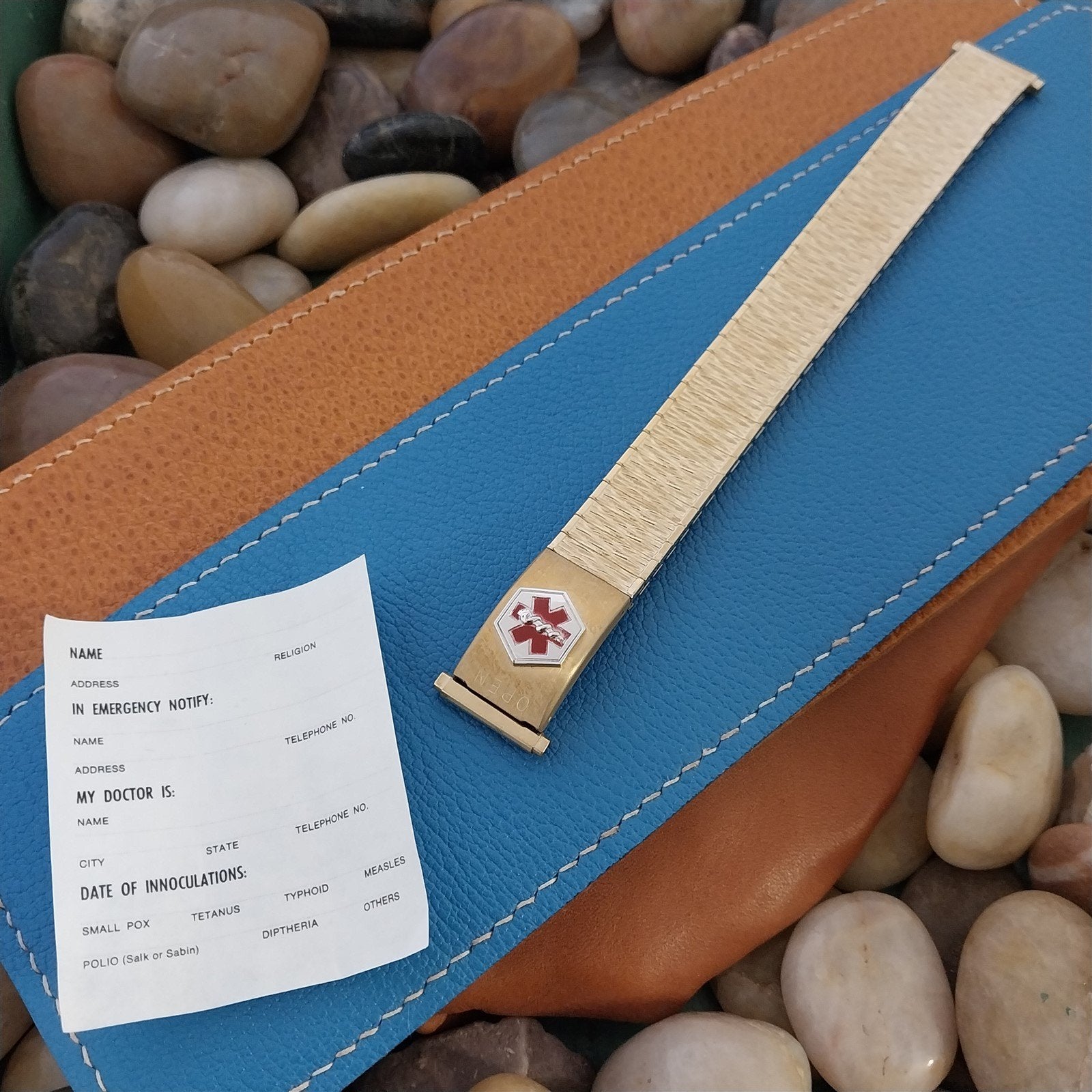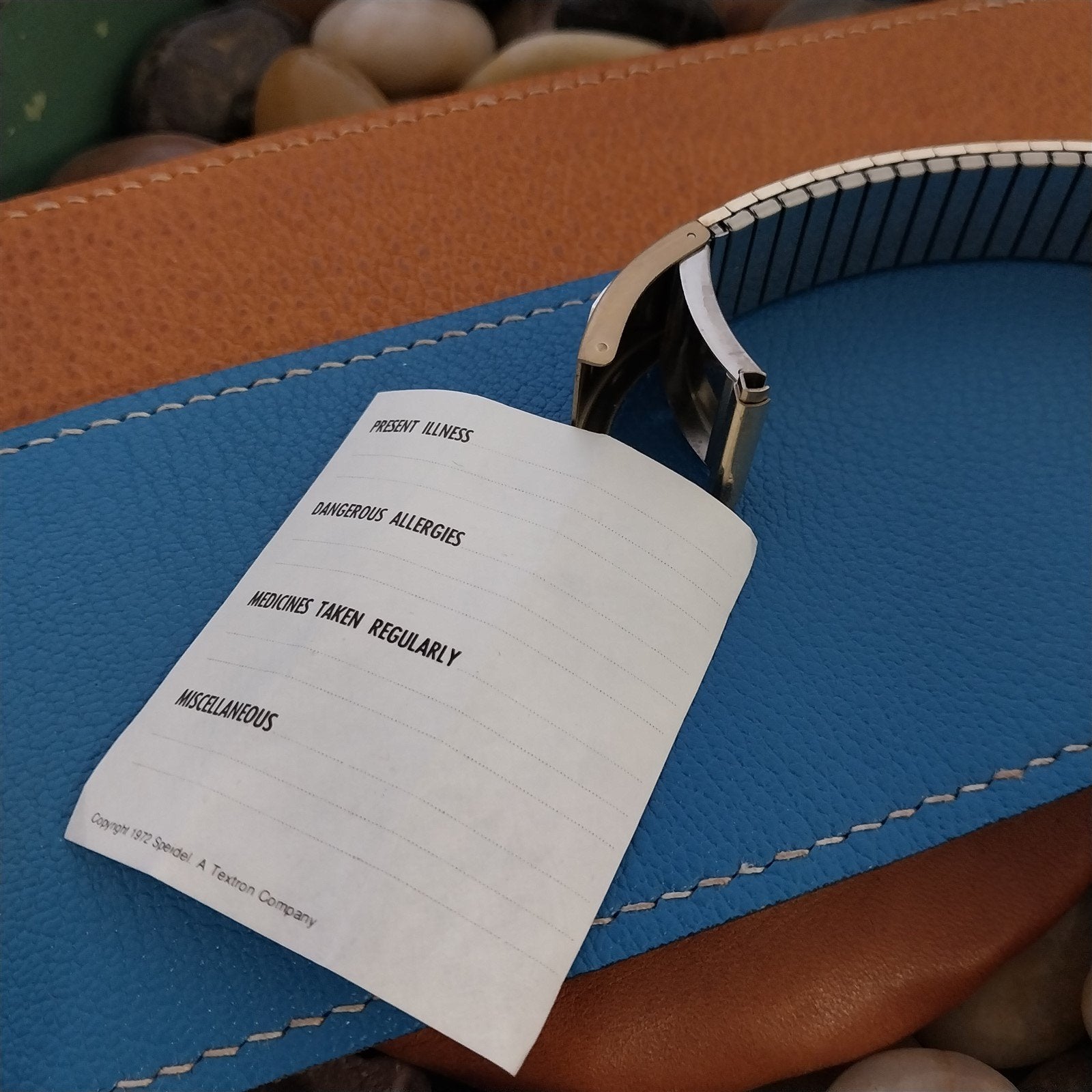 - NOS unused 1970s old-stock Speidel yellow gold-filled (rgp) expansion Valencia Medilog medical alert watch bracelet.
