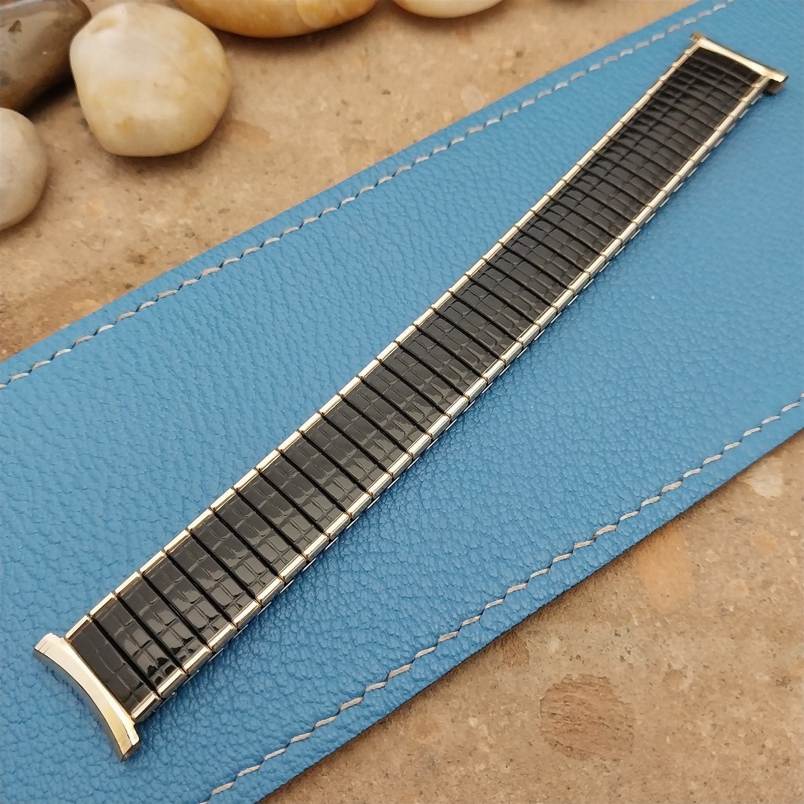 Speidel USA Romunda Black & Gold nos 1970s Vintage Watch Band 16mm-19mm