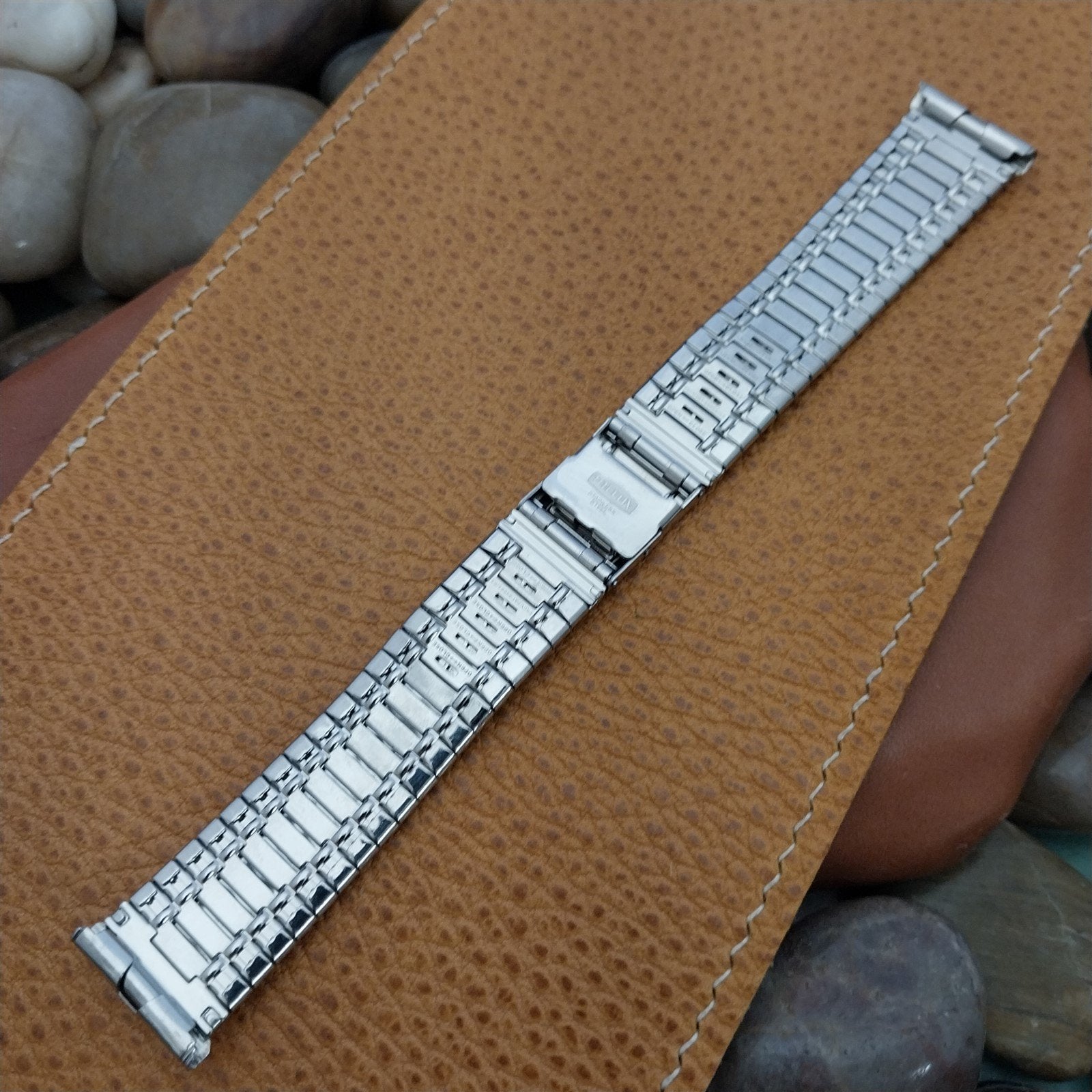 - NOS unused 1960s-1970s old-stock Kreisler Stelux stainless steel 2-piece watch bracelet.
