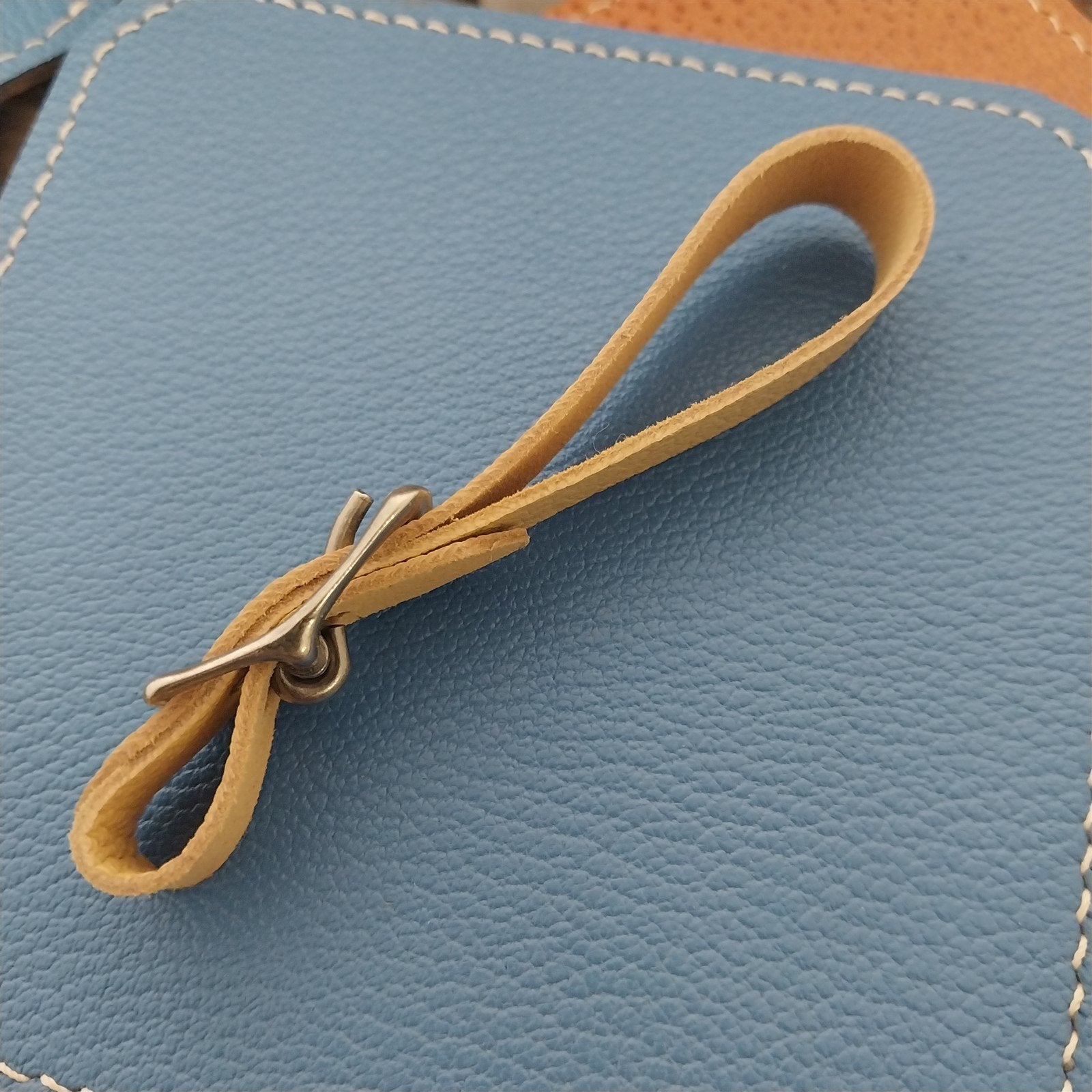 - Straw yellow French Alran Chevre Chagrin Sully goatskin leather fob strap.