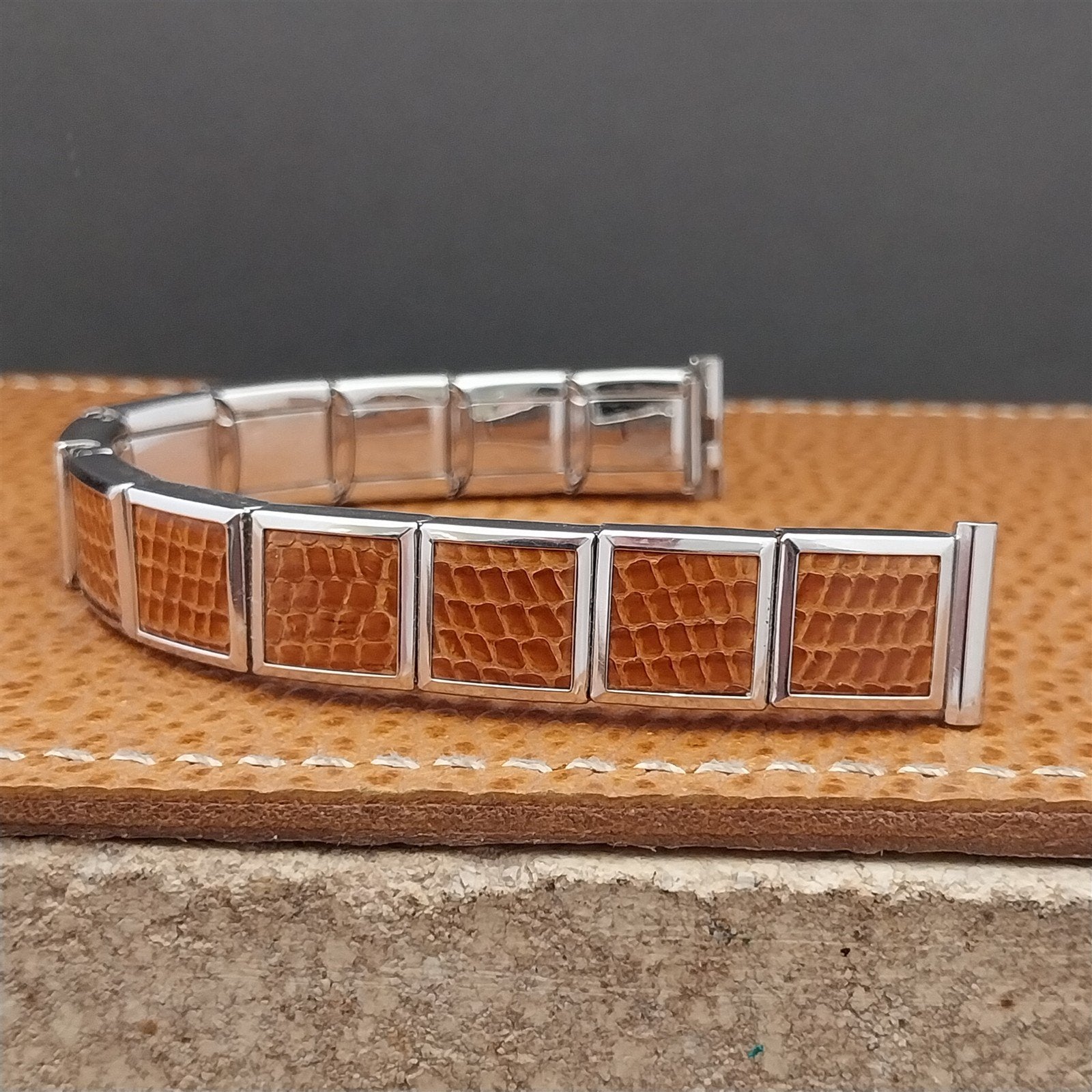 - NOS unused 1950s old-stock ladies Speidel Lizard Links 10k white gold-filled & tan lizard expansion cocktail watch bracelet.