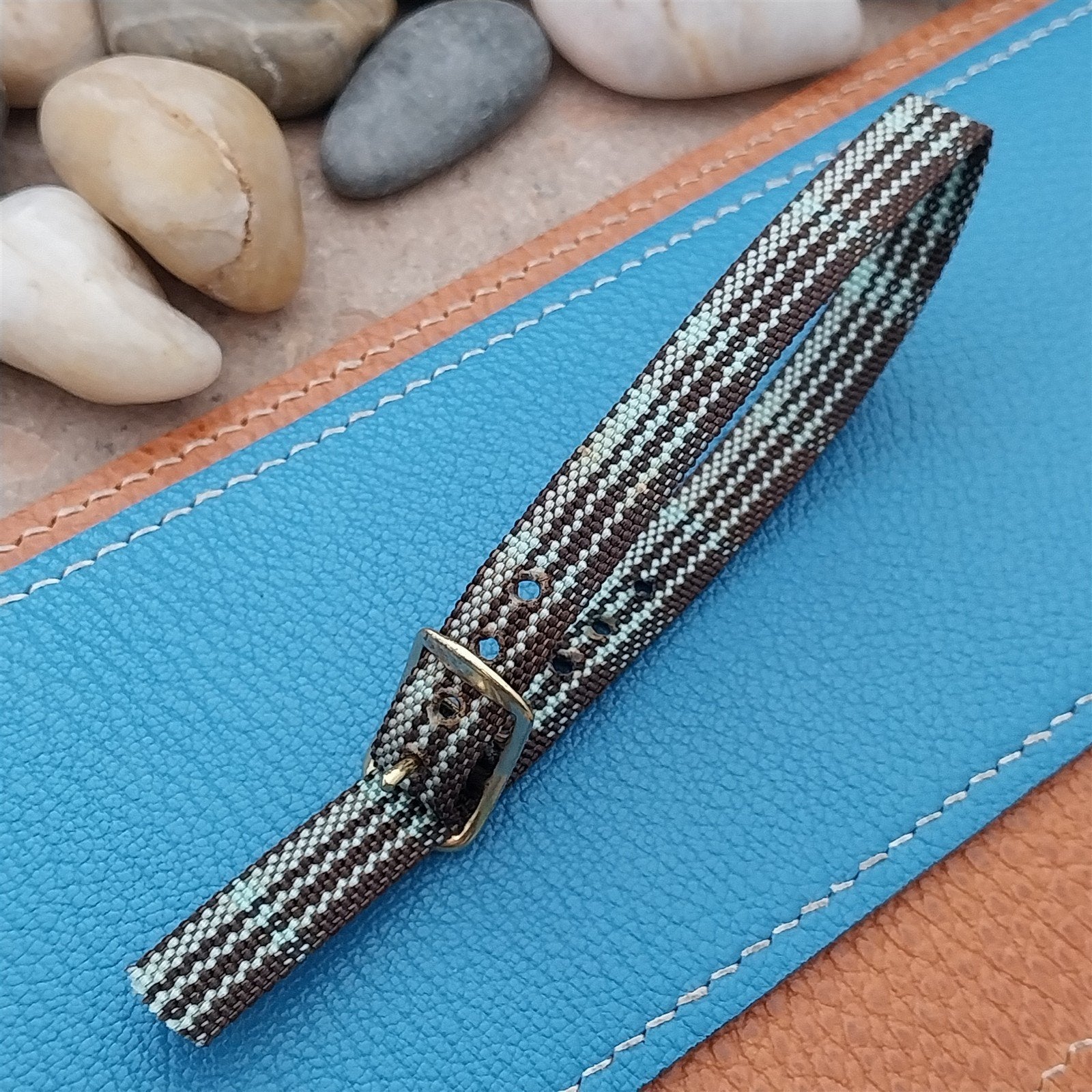 Vintage 10mm Ladies Madras Plaid Blue & Brown 1960s Single Pass Watch Strap