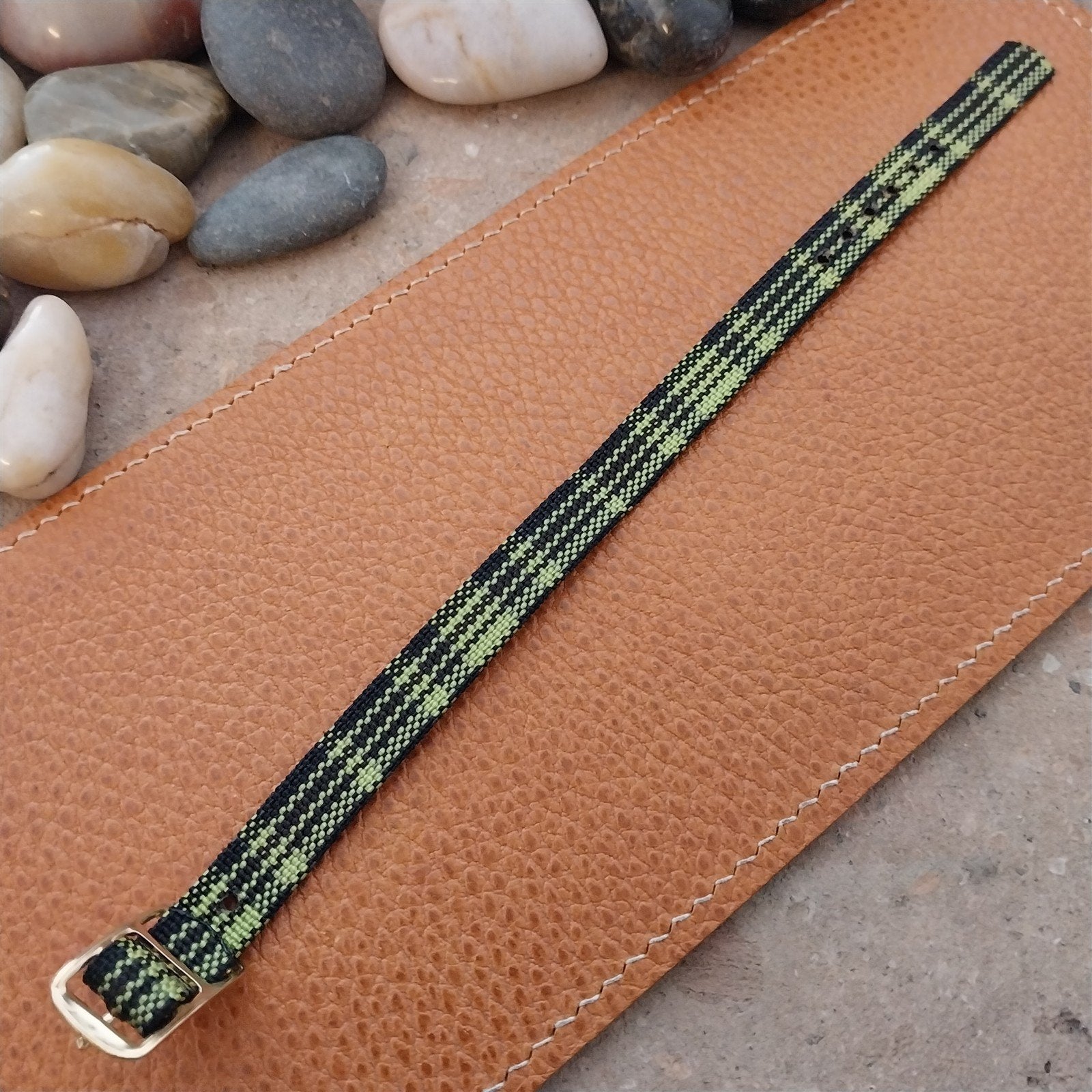 Vintage 10mm Ladies Madras Plaid Green & Black 1960s Single Pass Watch Band