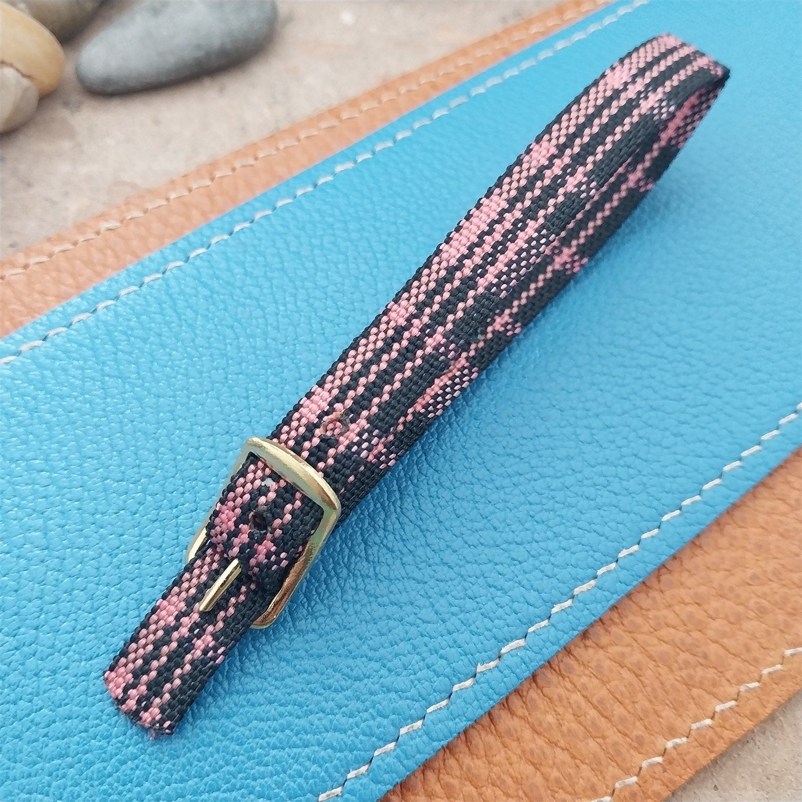 Vintage 10mm Ladies Madras Plaid Pink & Black 1960s Single Pass Watch Band