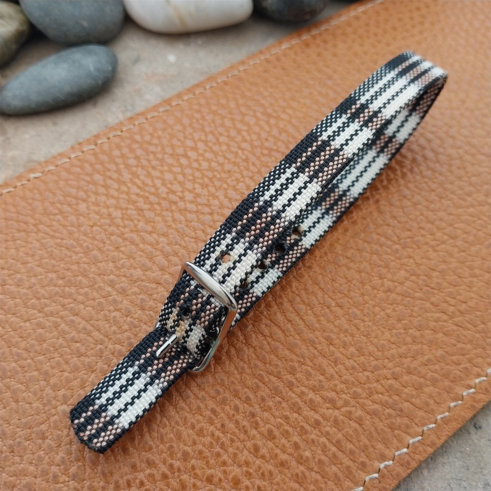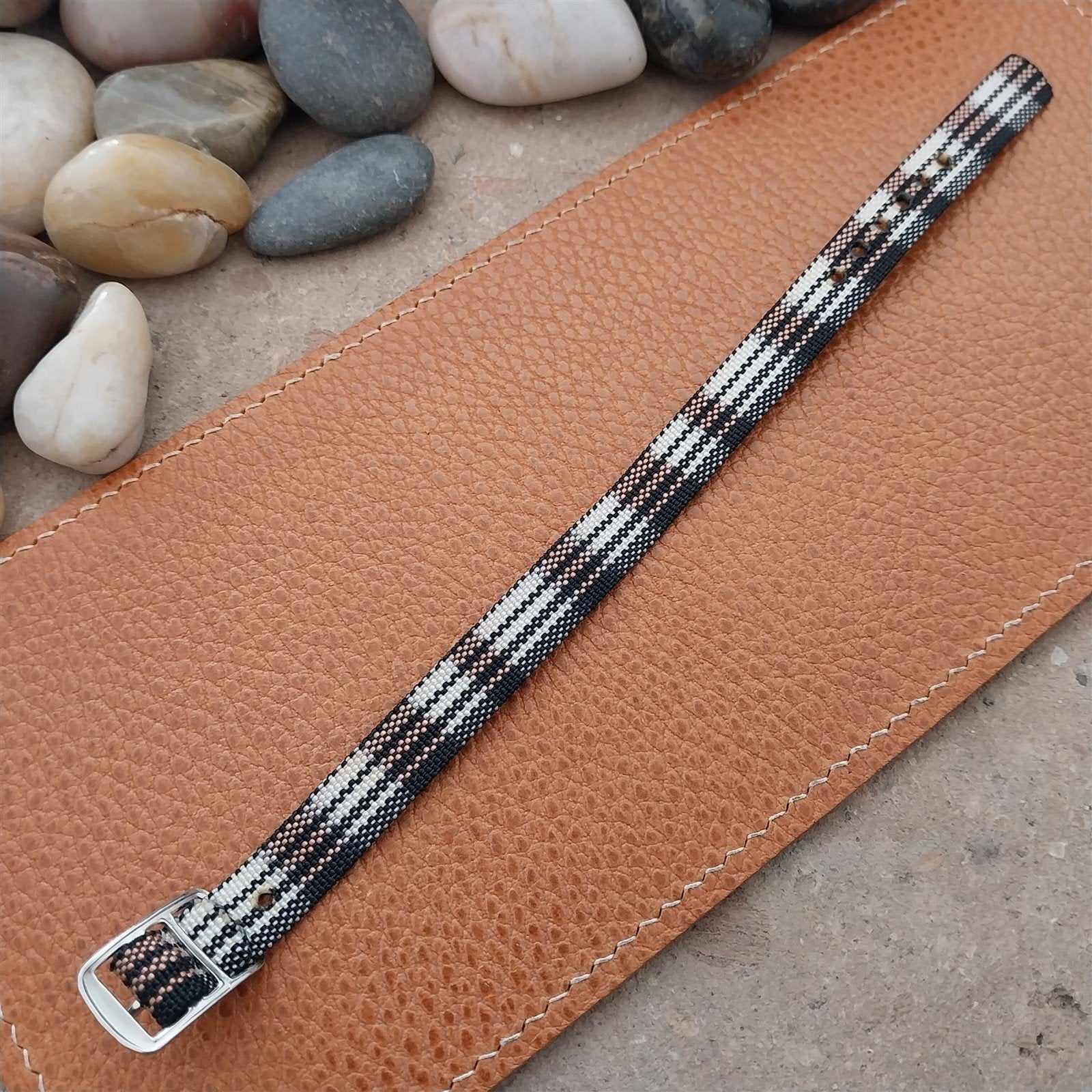 Vintage 10mm Ladies Madras Plaid Pink Black White 1960s Single Pass Watch Band