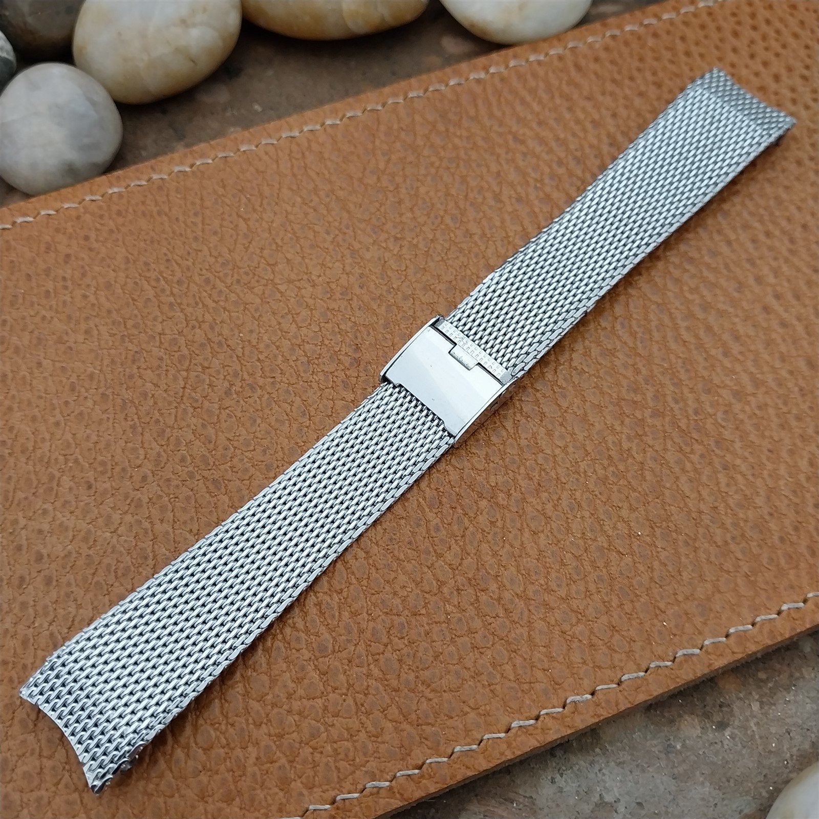 - NOS unused 1960s-1970s old-stock Speidel Man of Distinction 1/20 10K white gold-filled 2-piece Milanese mesh watch bracelet.