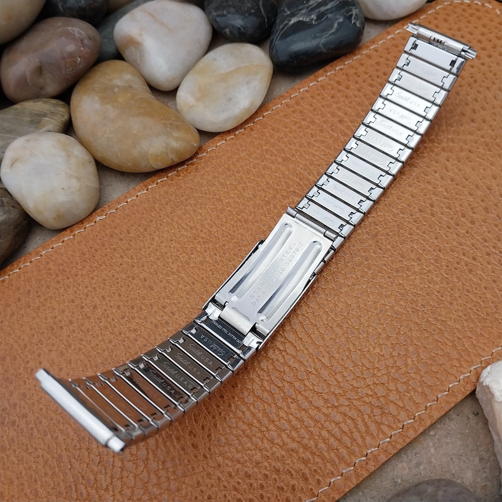 - NOS unused 1970s old-stock Speidel Flexi-Core Spartacus stainless steel wide deployment watch bracelet.