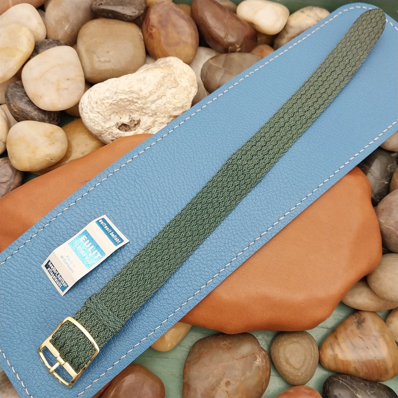 - Unused new old stock Eulit Panama Neu braided Perlon single pass watch band.