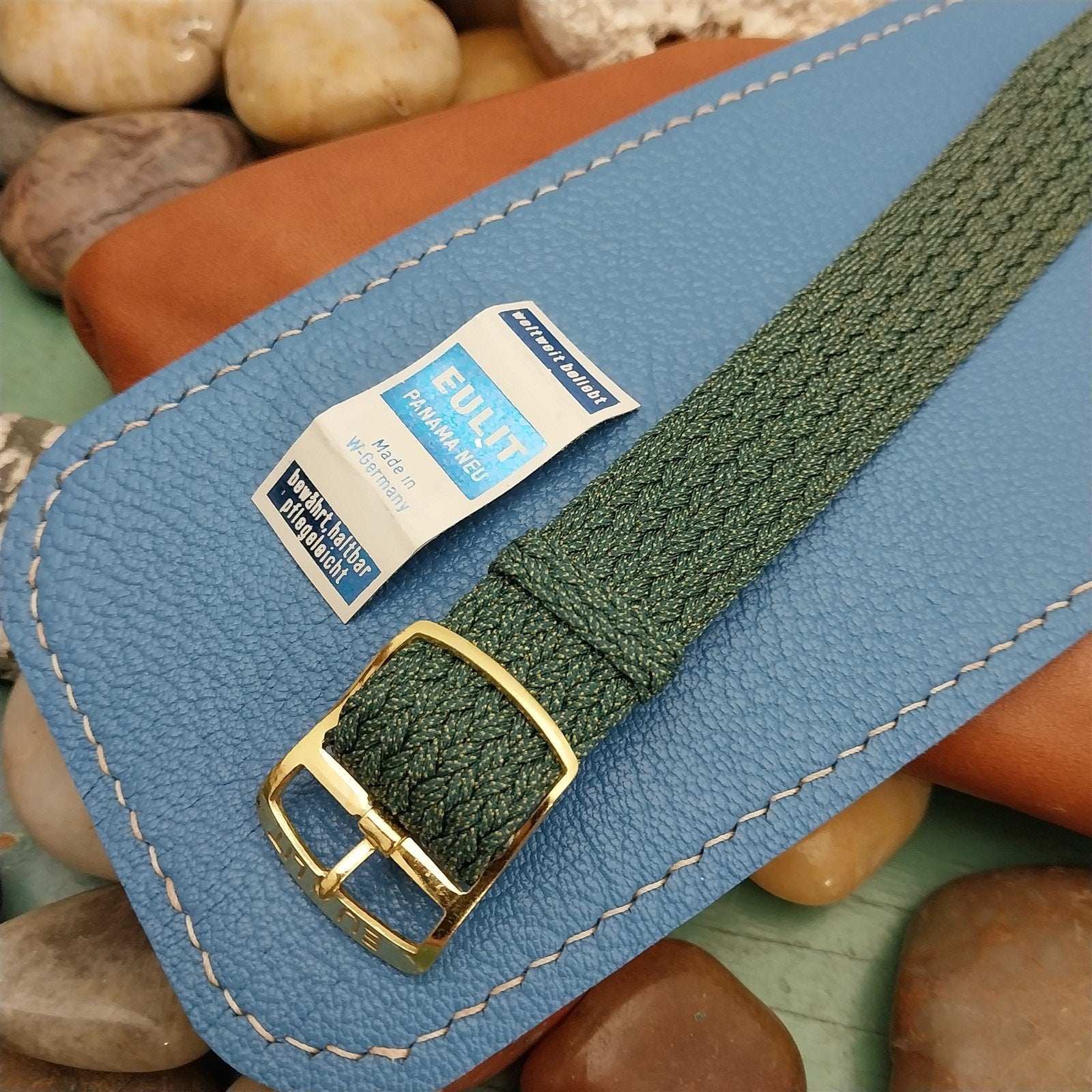 Vintage 18mm Braided Perlon Green Melange Eulit Panama Neu Unused Watch Band