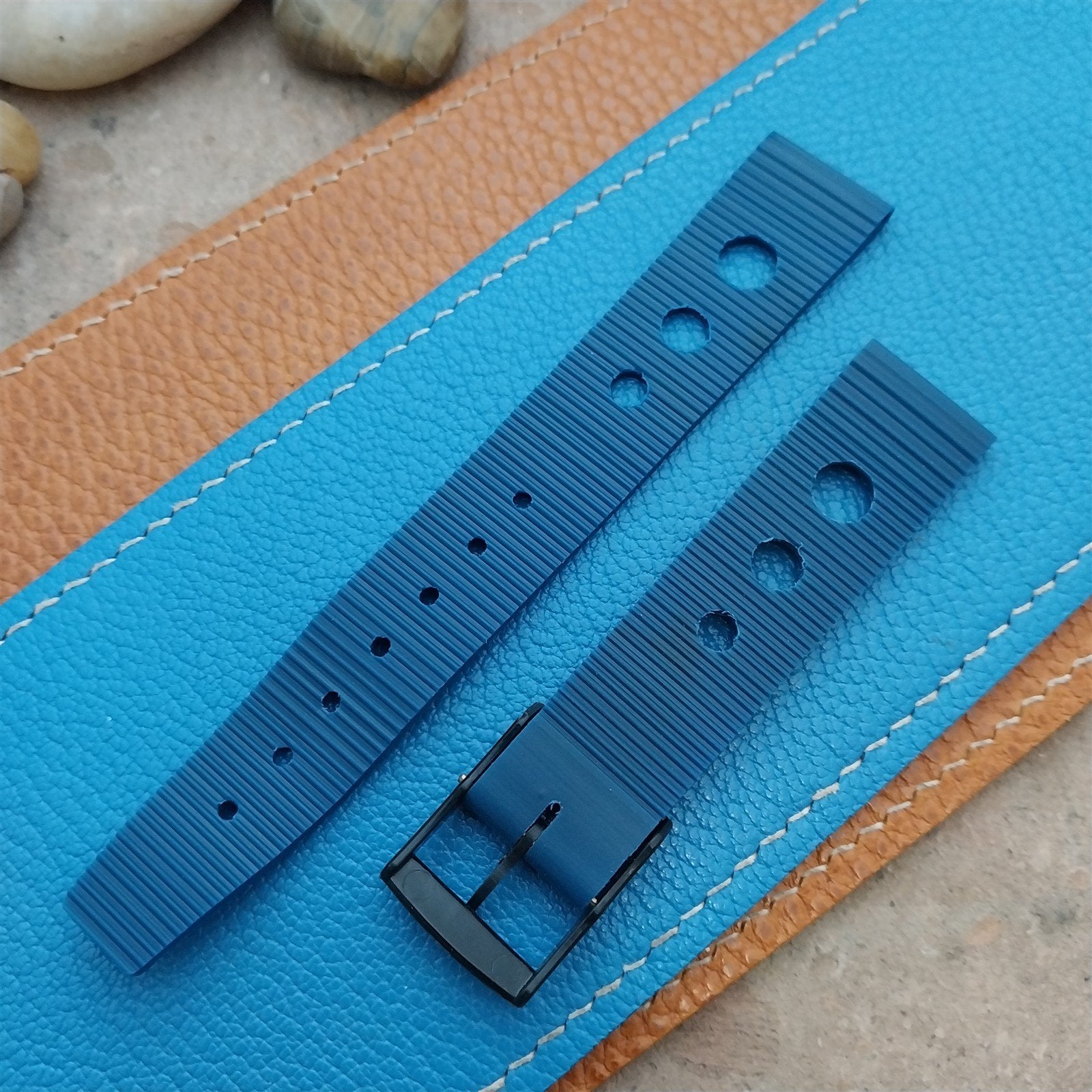 Vintage 18mm Rally GT Strap Blue & Black Round Hole NOS 1960s-1970s Watch Strap