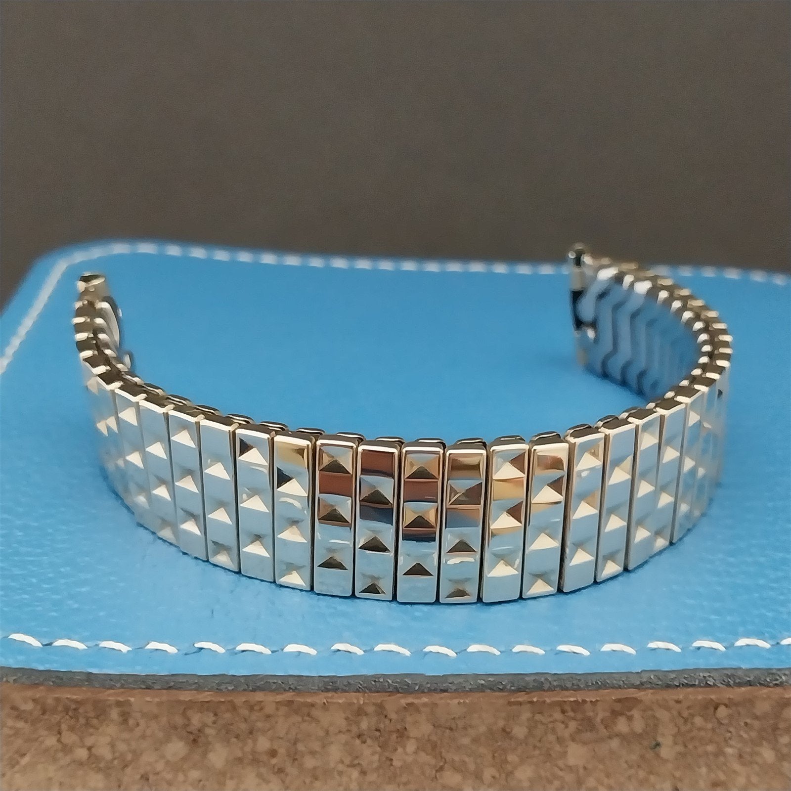 - NOS unused 1954 old-stock Speidel Balboa 10k yellow gold-filled scissor-expansion watch bracelet.