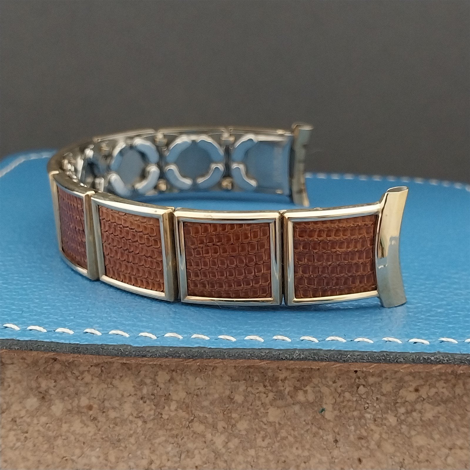 - NOS unused old-stock 1956 Speidel Leatha Elegance 10k yellow gold-filled Floating Link expansion watch bracelet with genuine lizard-skin inserts.