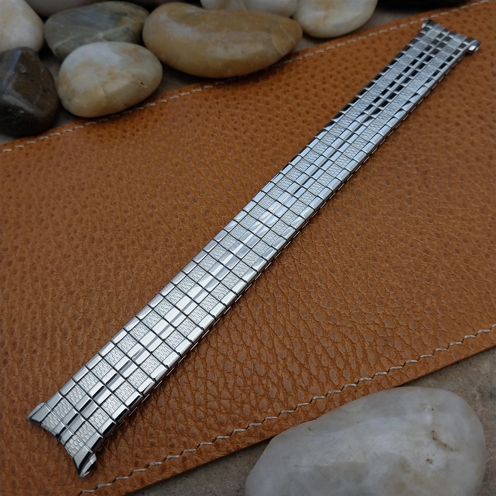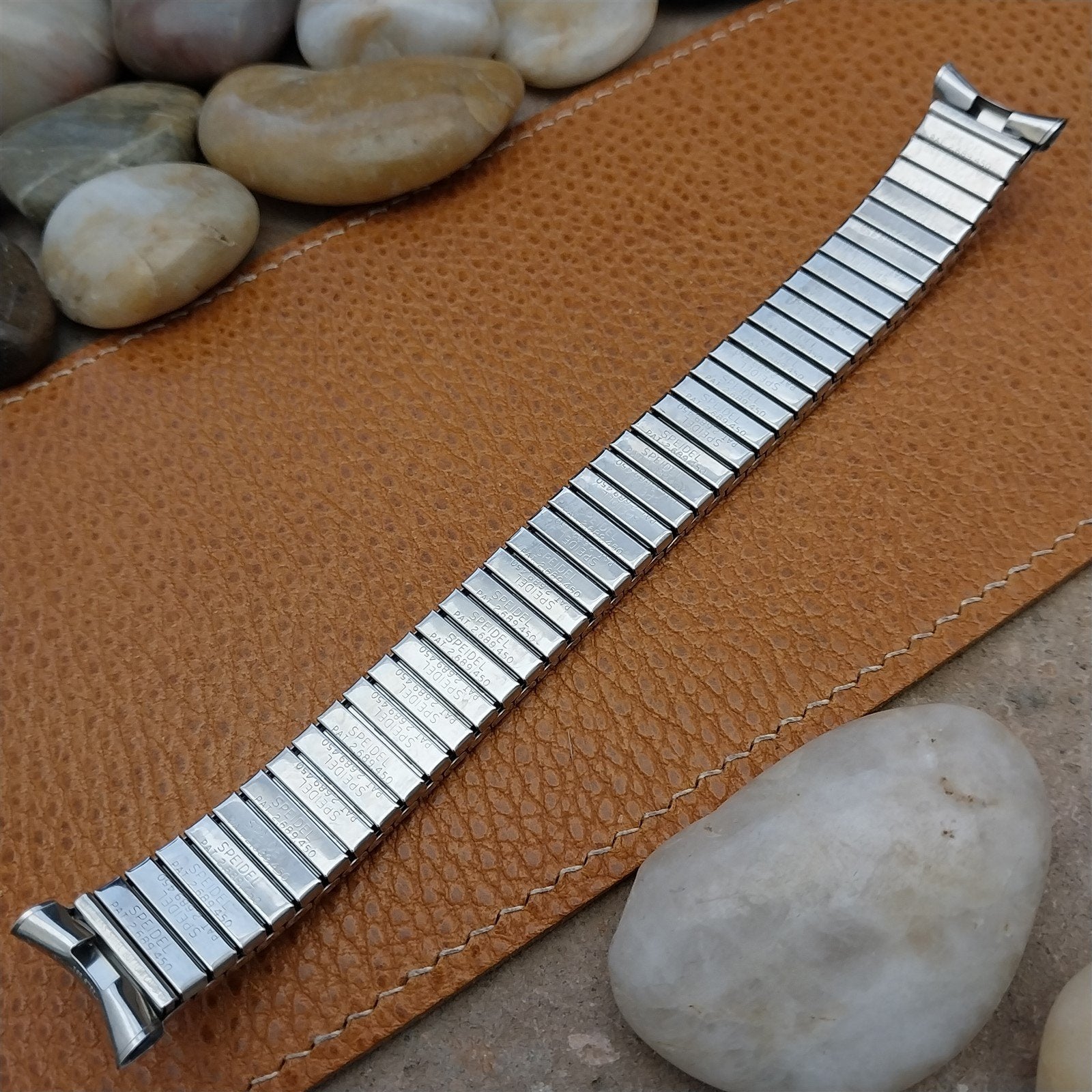 - NOS unused 1960s old-stock Speidel Meteor stainless steel expansion watch band.