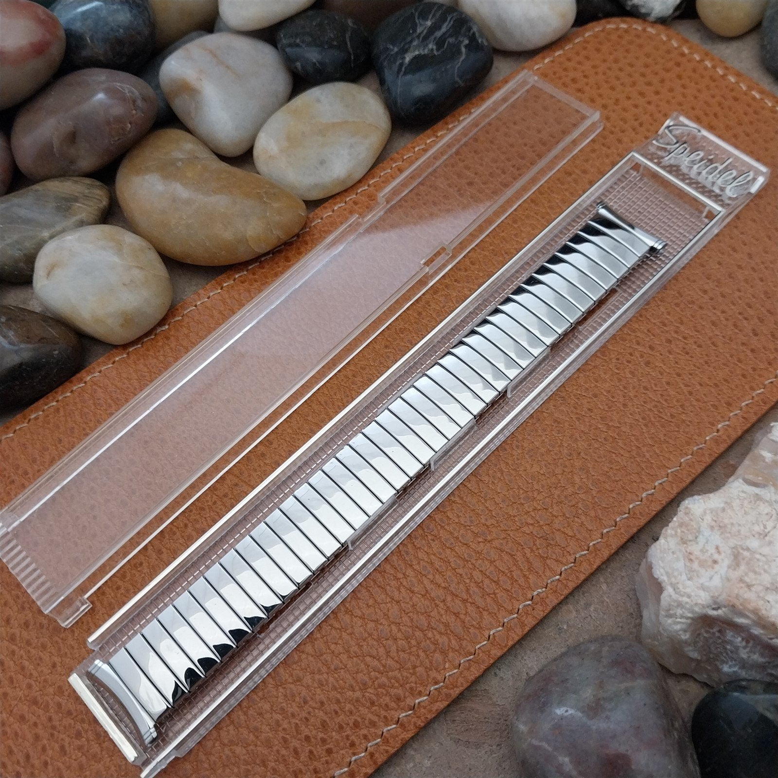 - NOS unused old-stock vintage 1970 Speidel Plainsman high-polish stainless steel expansion watch bracelet.