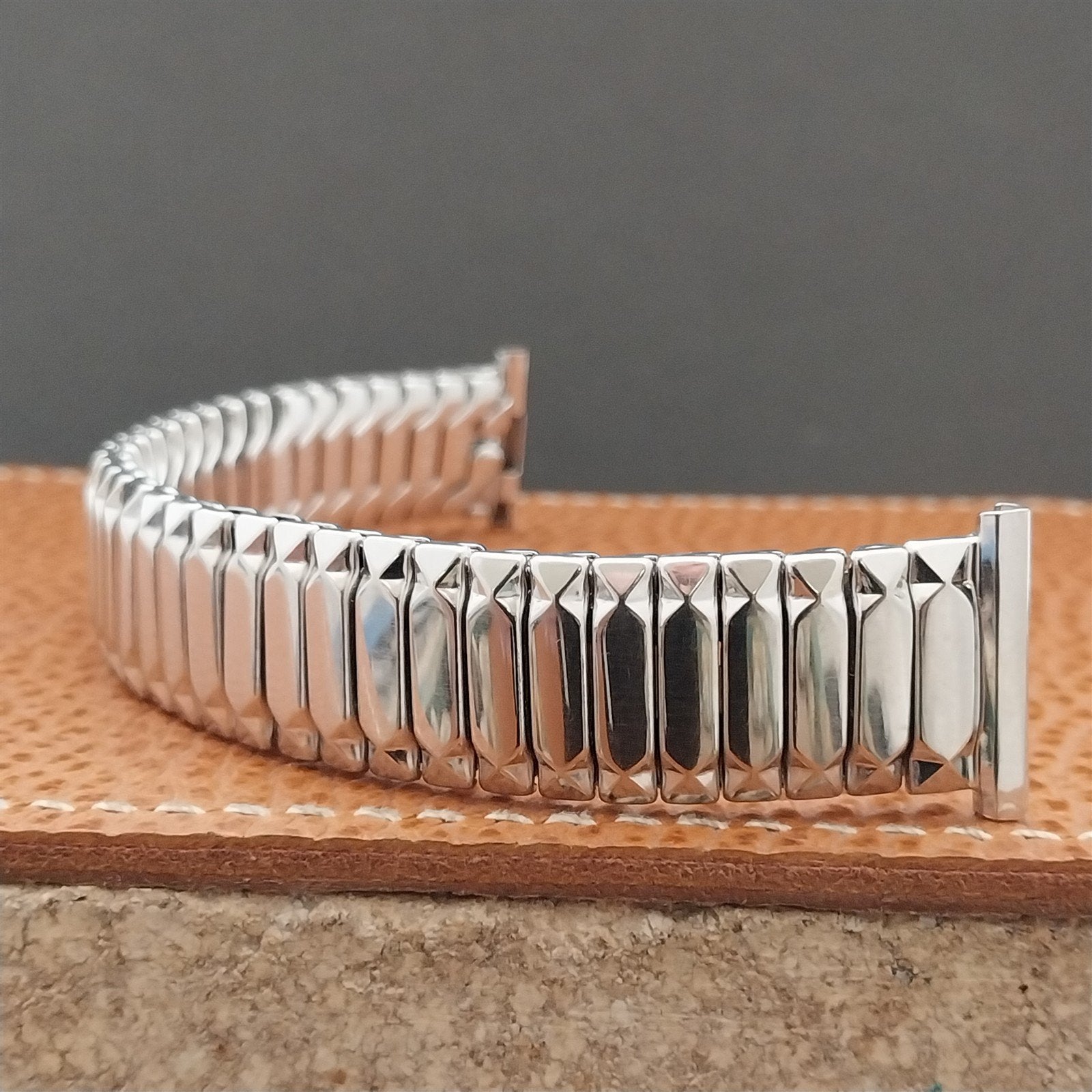 - NOS unused 1955 Speidel First Nighter white gold-filled scissor-expansion watch bracelet.