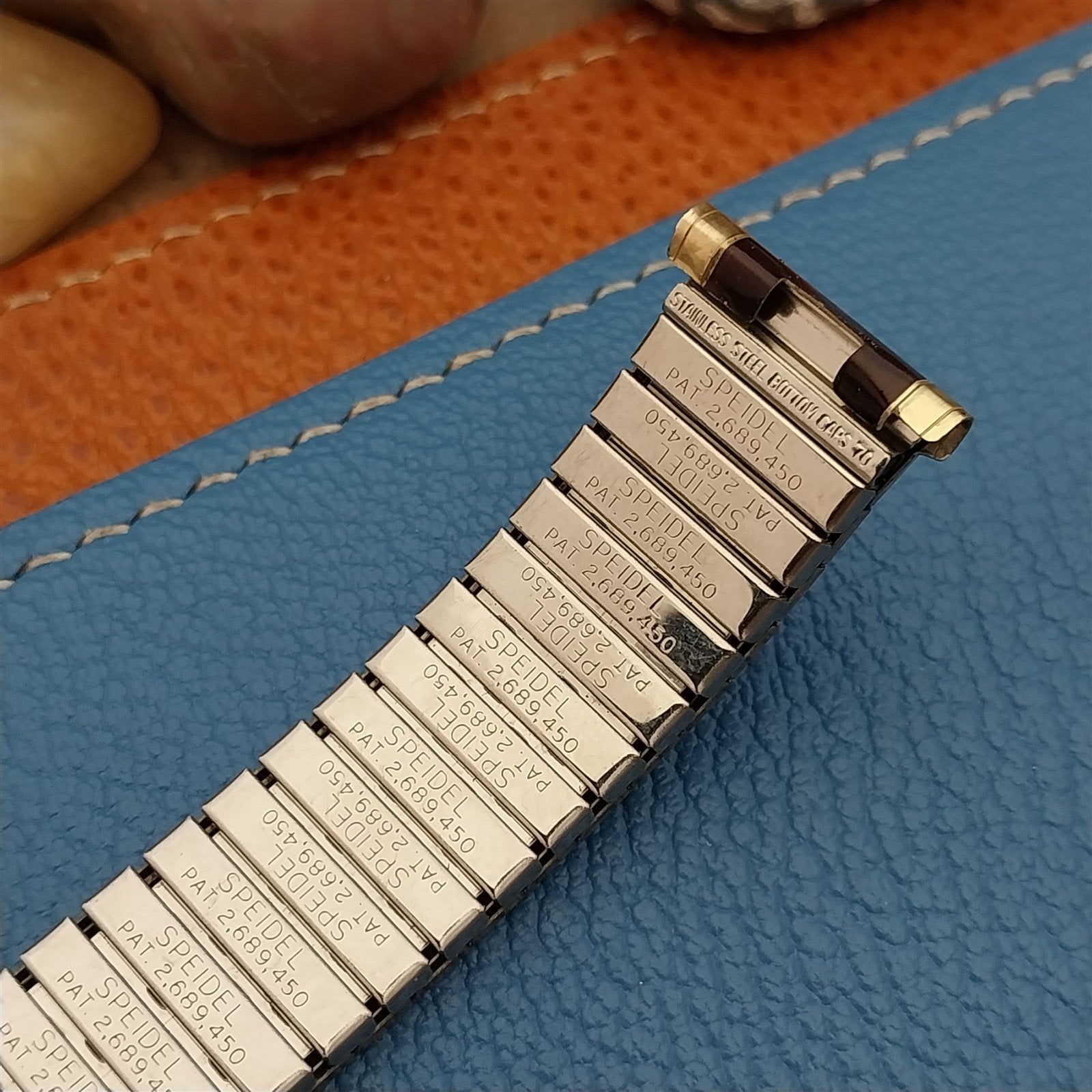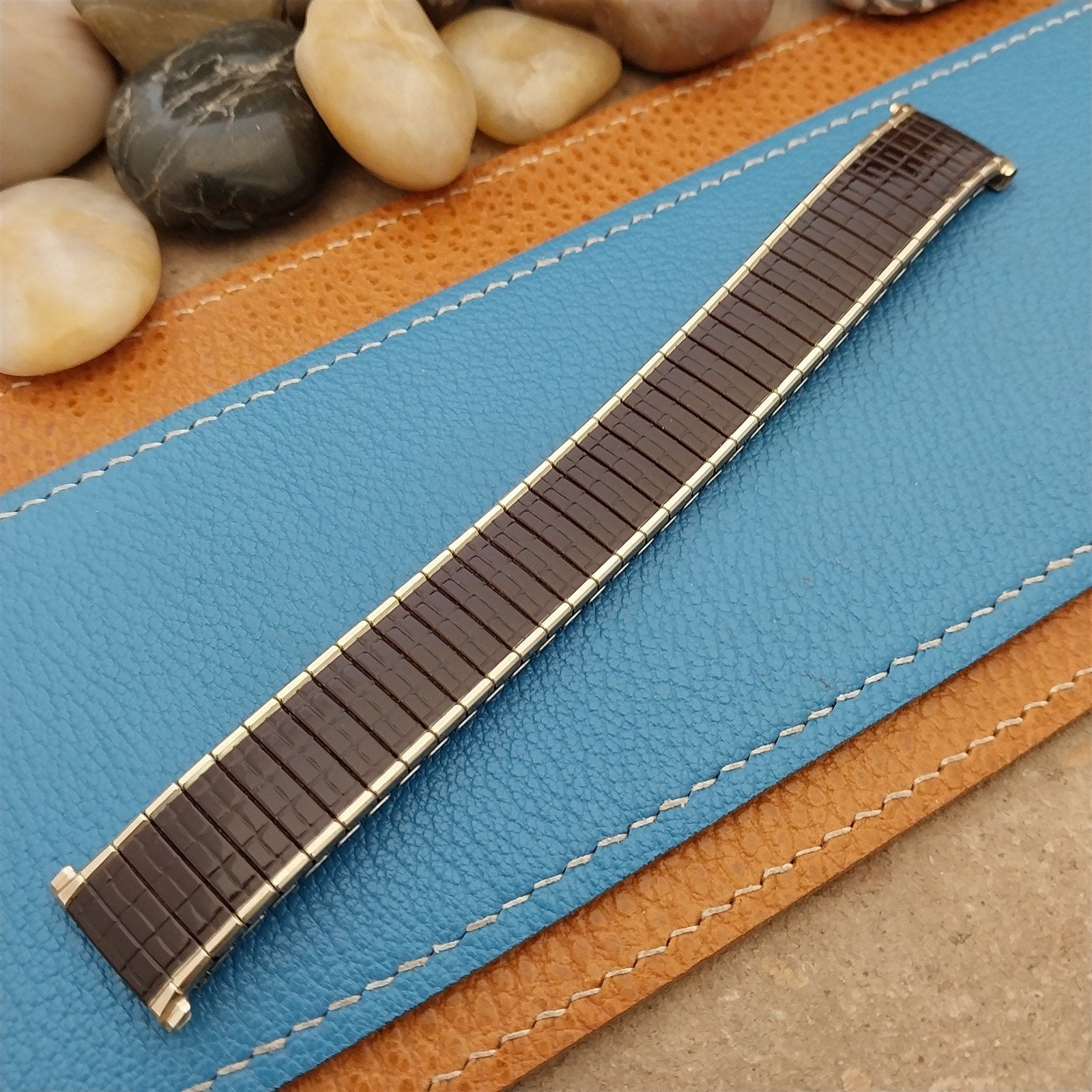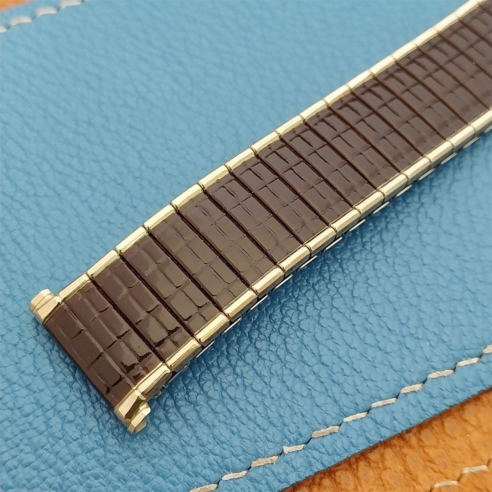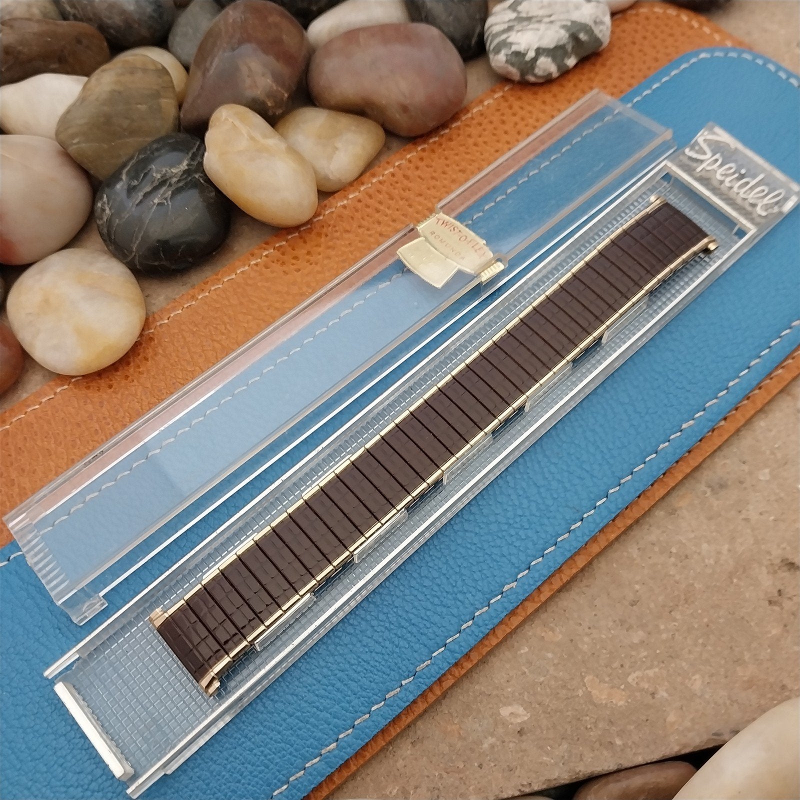 - NOS unused 1970 Speidel Romunda dark rootbeer brown & yellow gold-filled expansion watch bracelet.