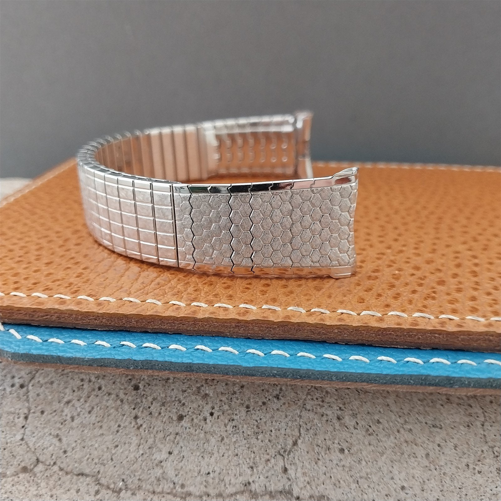 Vintage 19mm 18mm Speidel Honeycomb White Gold-Filled Unused 1960s Watch Band