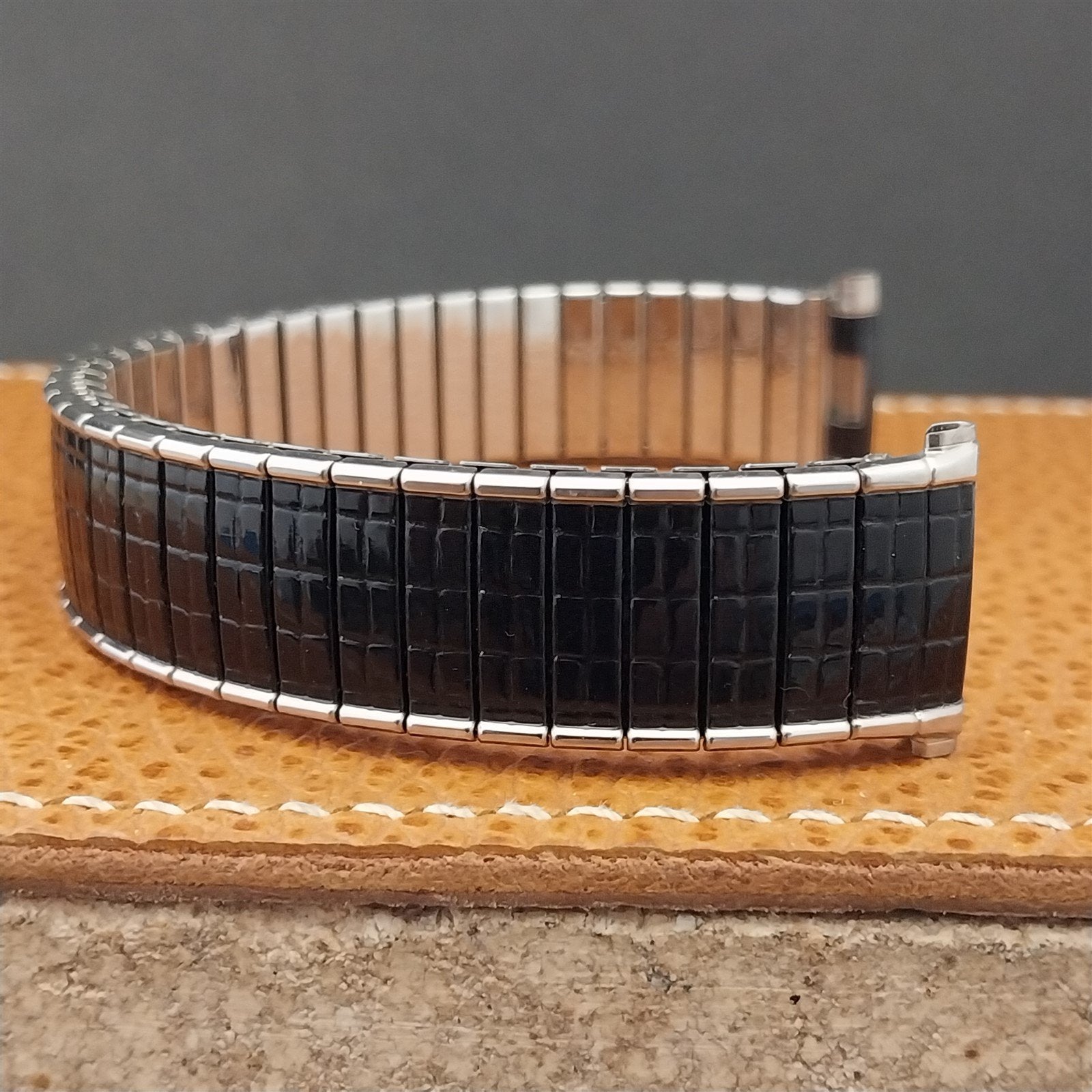 Vintage 19mm 18mm Stainless Steel & Black Romunda Speidel 1969 Unused Watch Band
