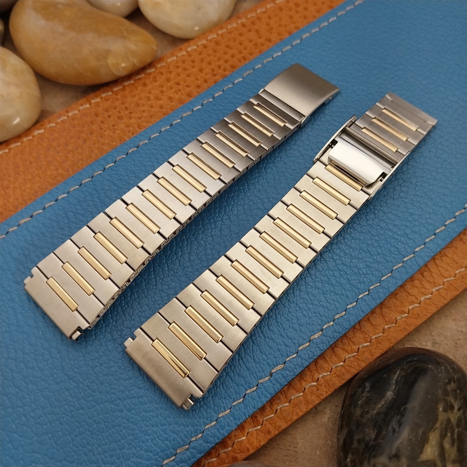 - NOS unused Speidel stainless steel & yellow gold-tone 2-piece watch bracelet.