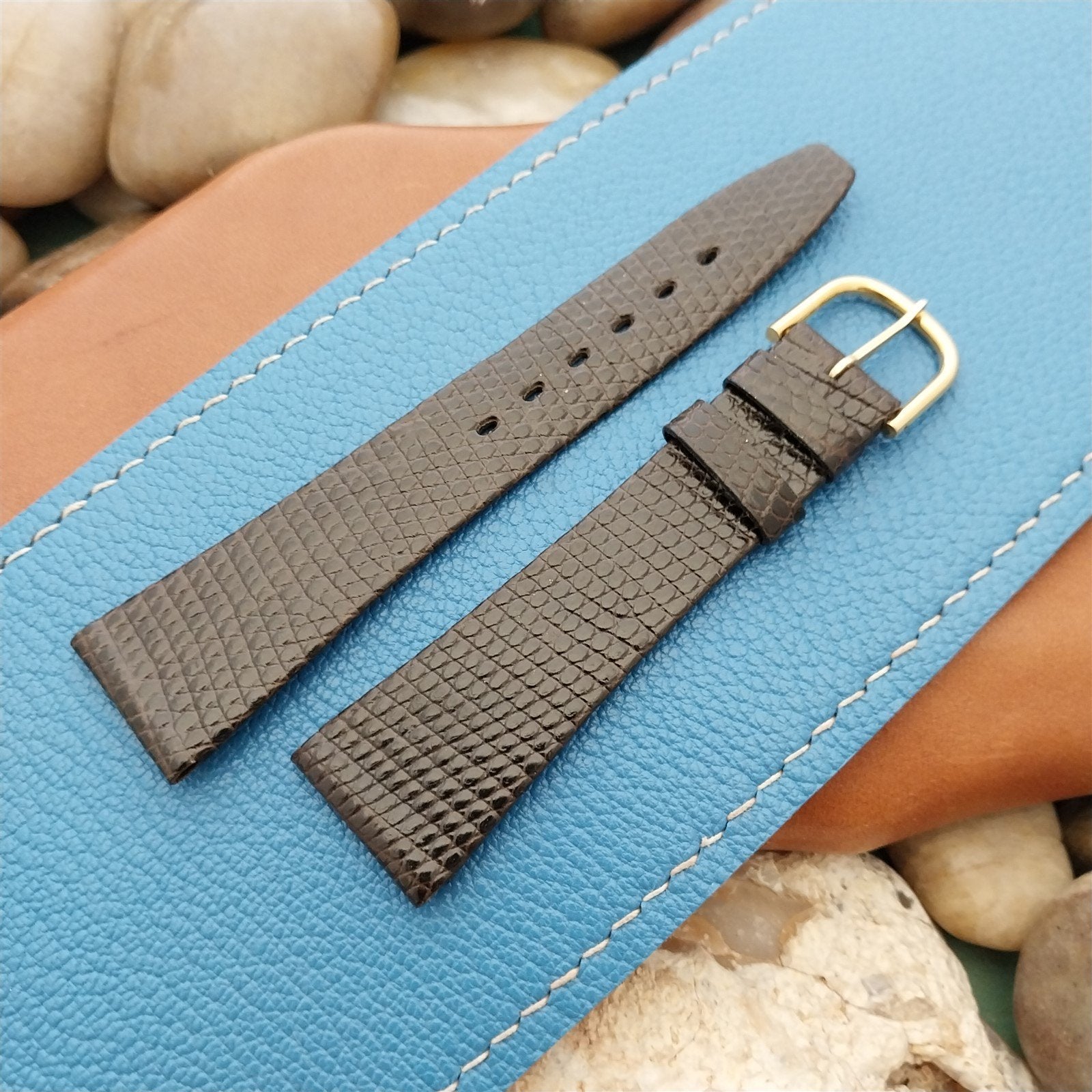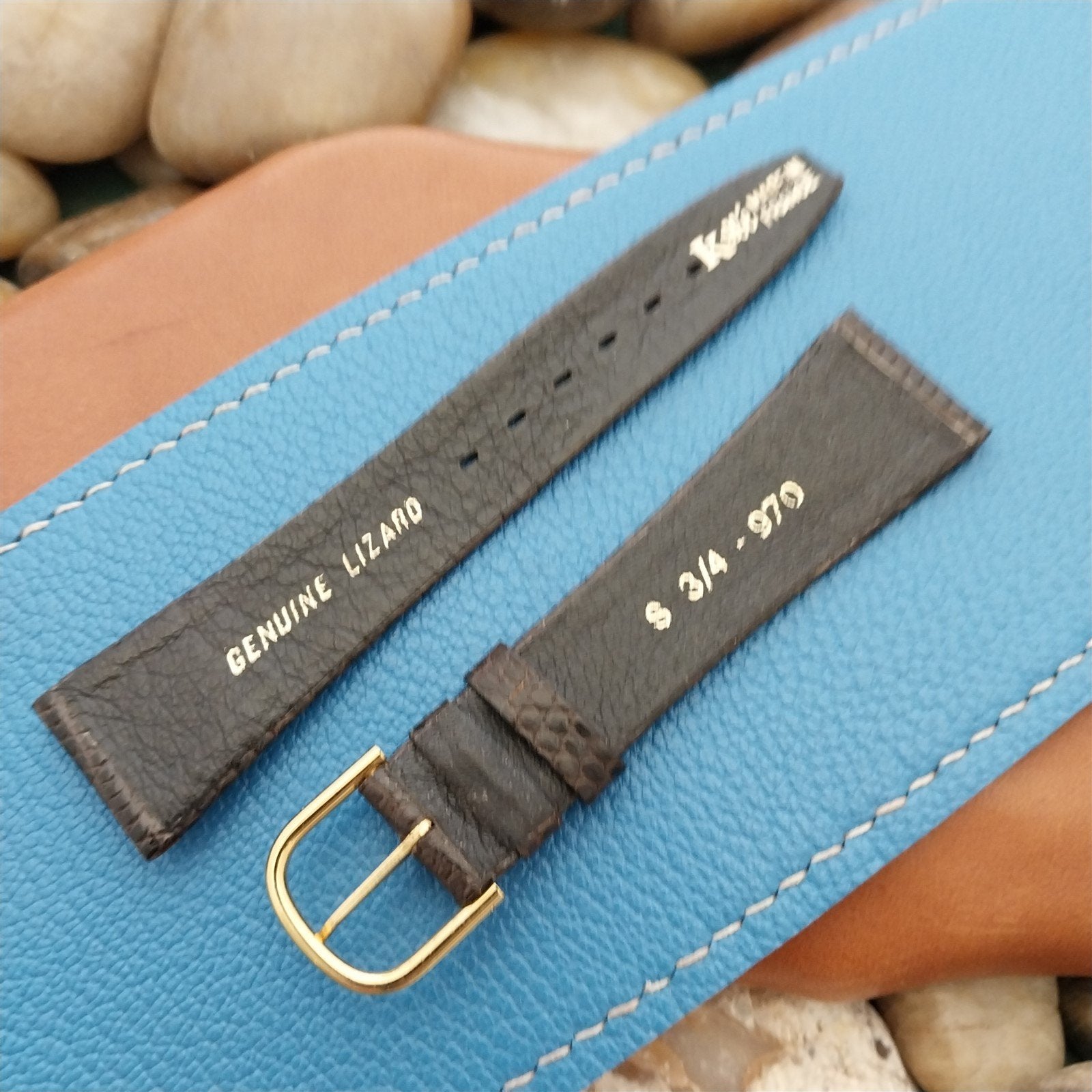 Vintage 19mm Short Kalbe France Brown Classic Tapered Lizard 1970s Watch Band