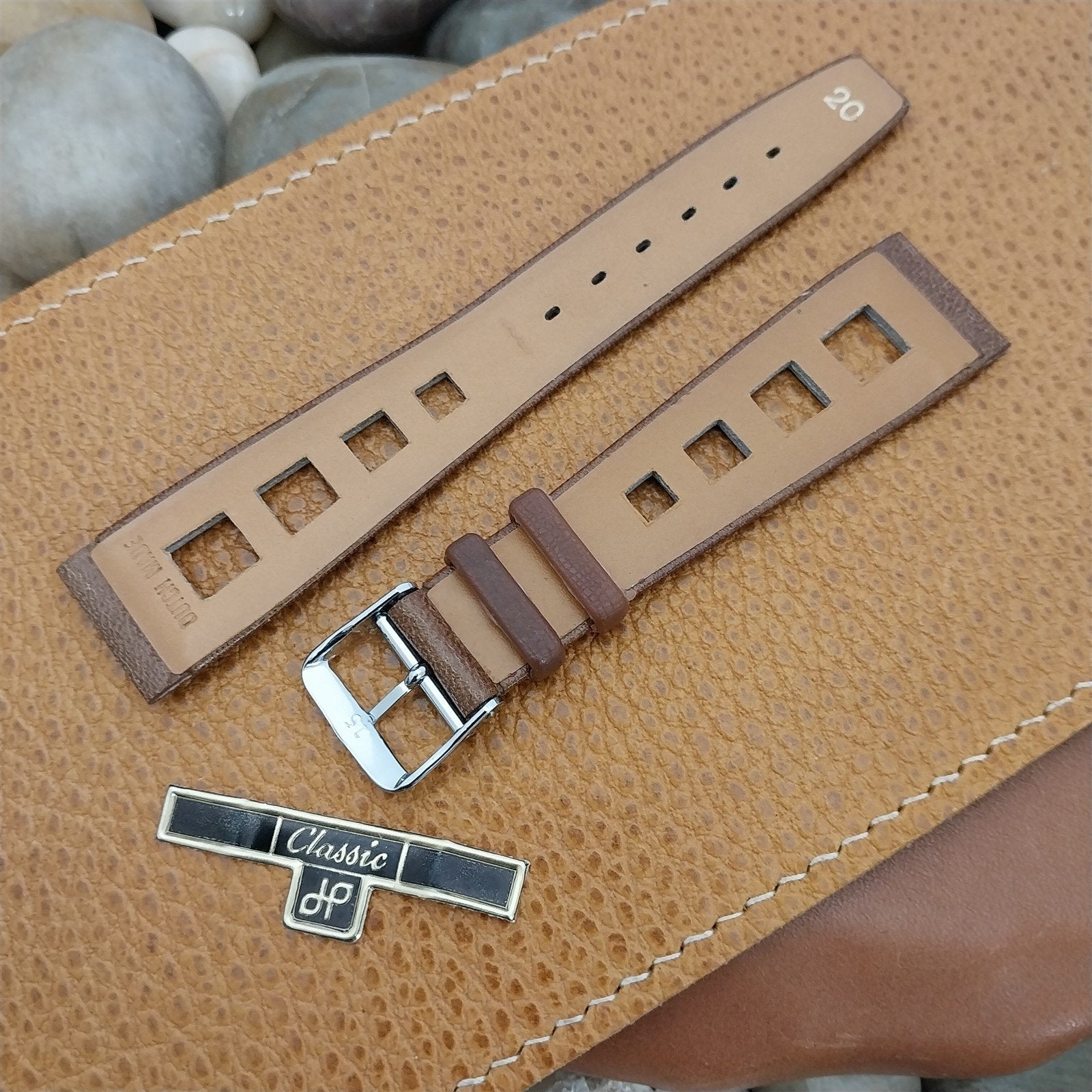 Vintage 20mm 1960s Brown GT Rally Contrast Stitch Classic Tapered nos Watch Band