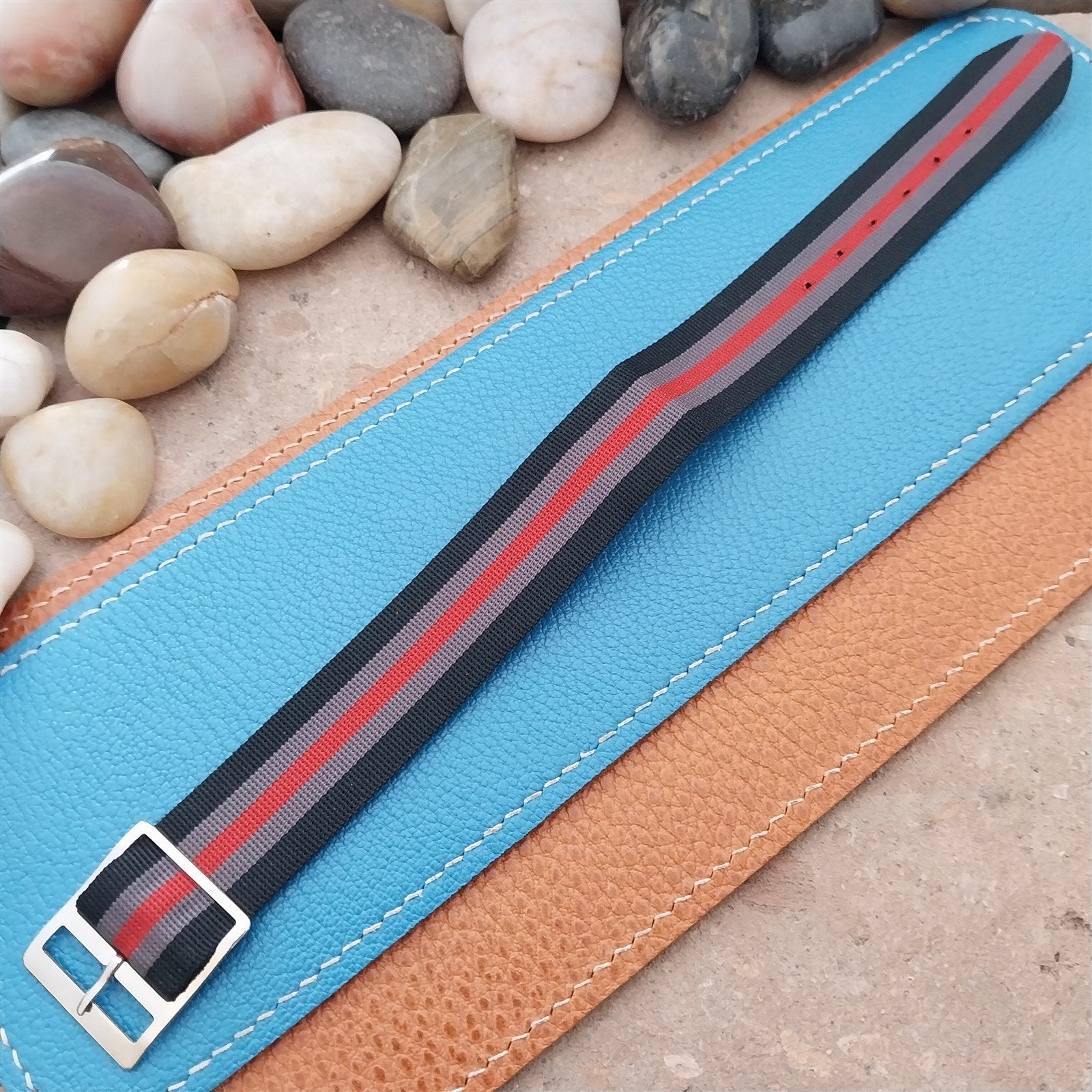 Vintage 20mm Striped Perlon Unused NOS 1960s Classic Single Pass Watch Strap