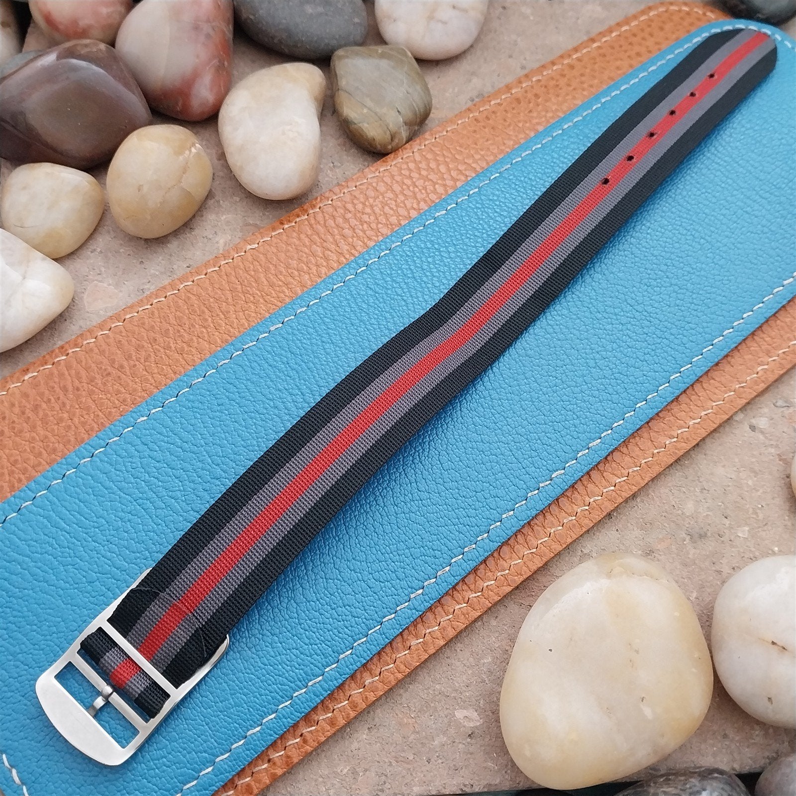 Vintage 20mm Striped Perlon Unused Unused 1960s Classic Single Pass Watch Strap