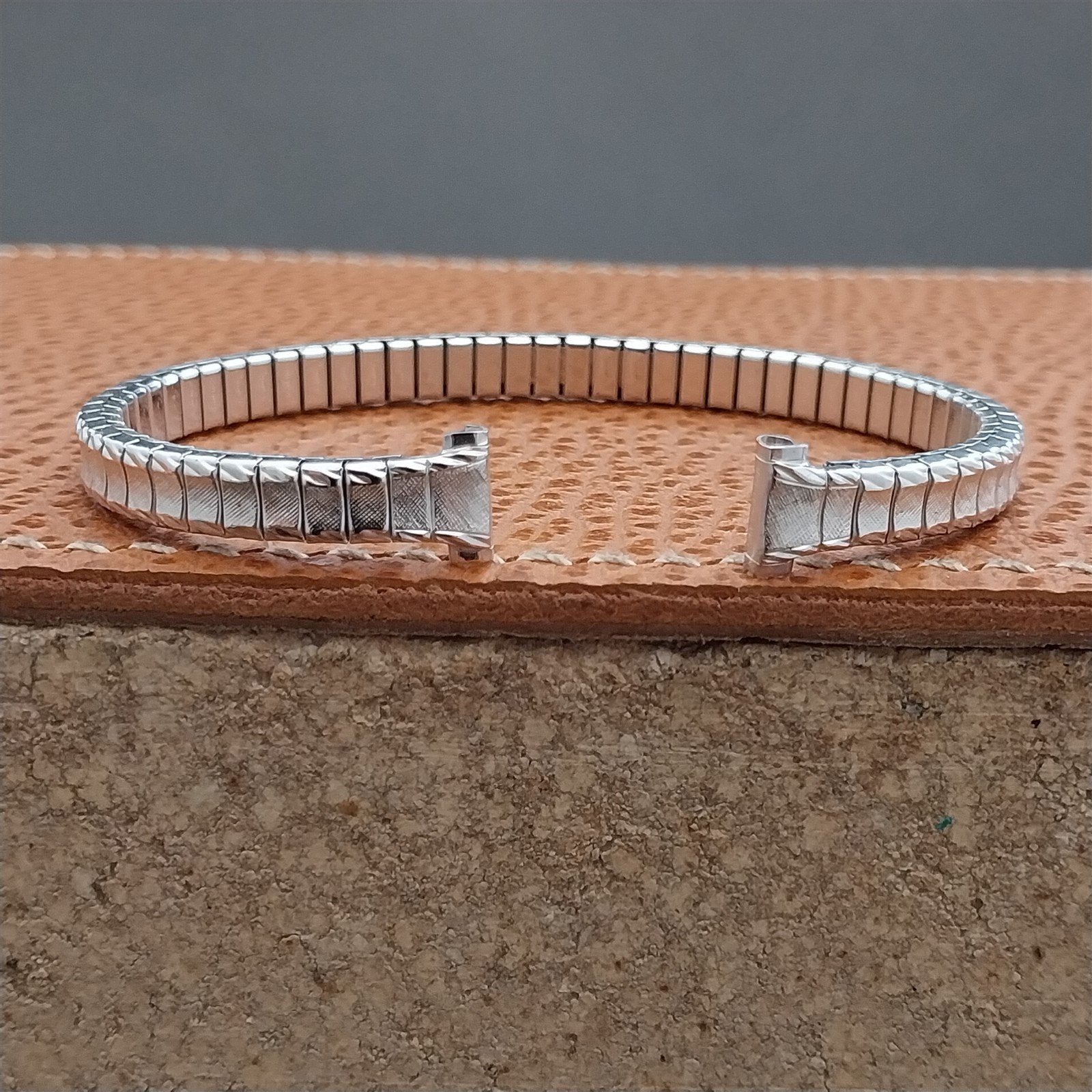 - NOS unused 1970s old-stock ladies Speidel 10k white gold-filled expansion cocktail watch bracelet.