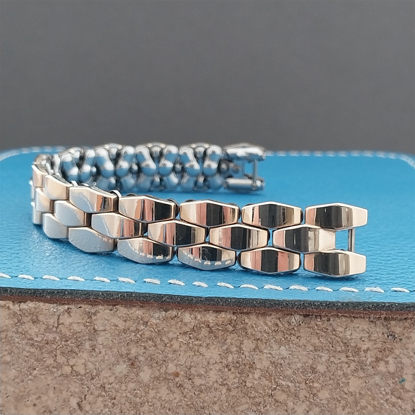 - NOS unused 1950s old-stock Apex 12k yellow gold-filled quadra-flex expansion watch bracelet.