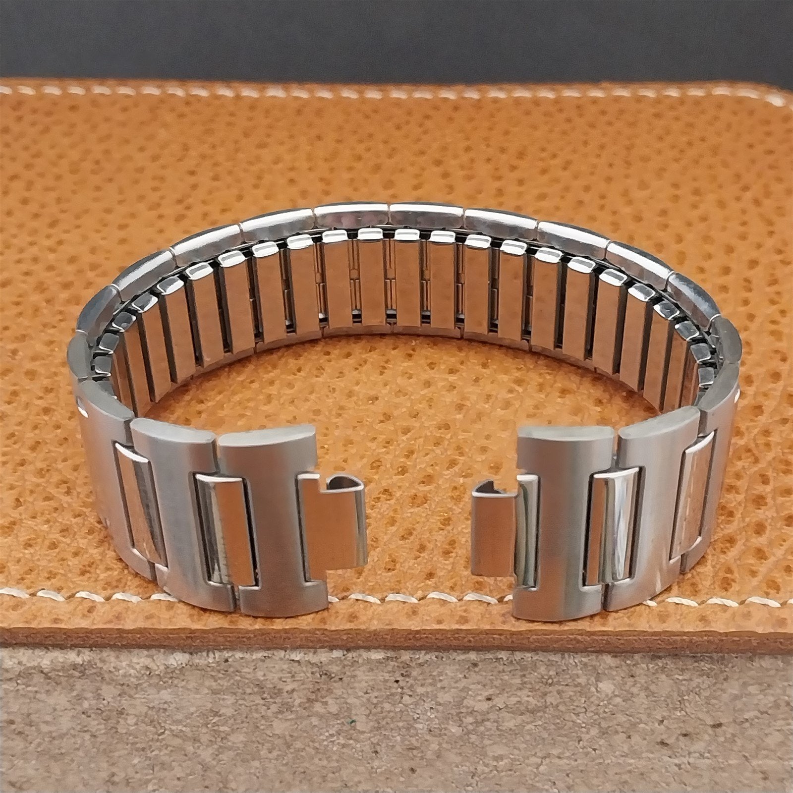 - NOS unused 1970s old-stock Speidel USA stainless steel expansion centerwatch band.