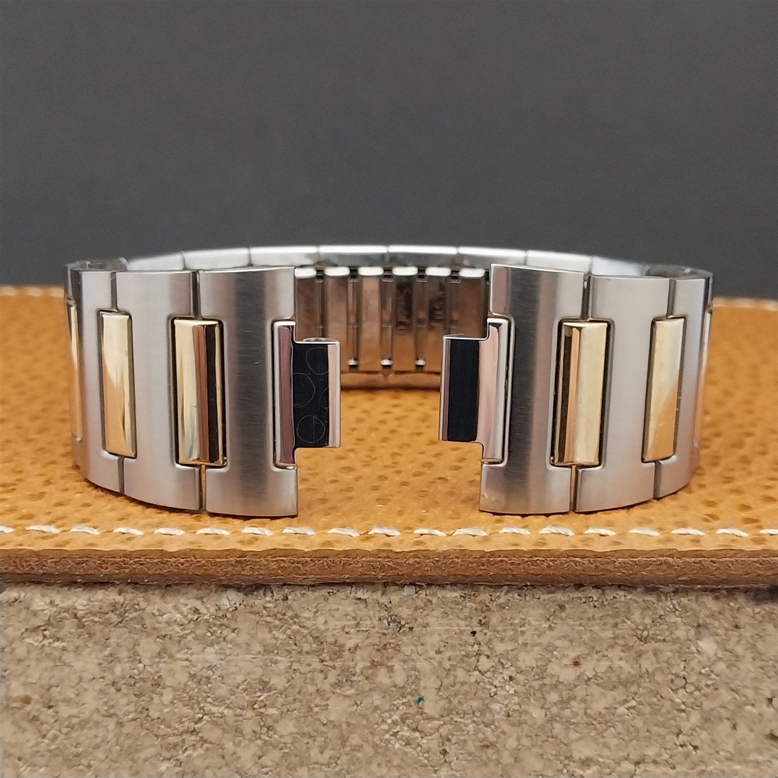 - NOS unused 1970s old-stock Speidel stainless steel & yellow gold-tone expansion watch band.
