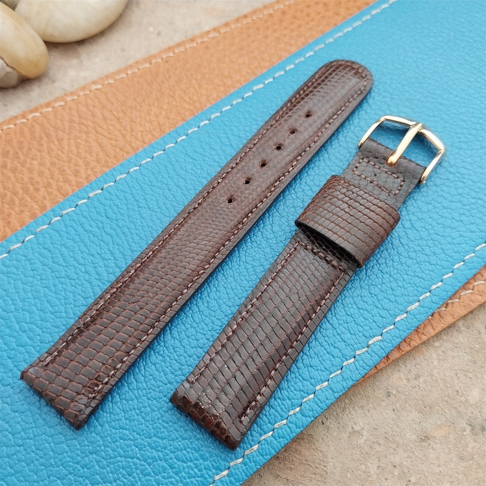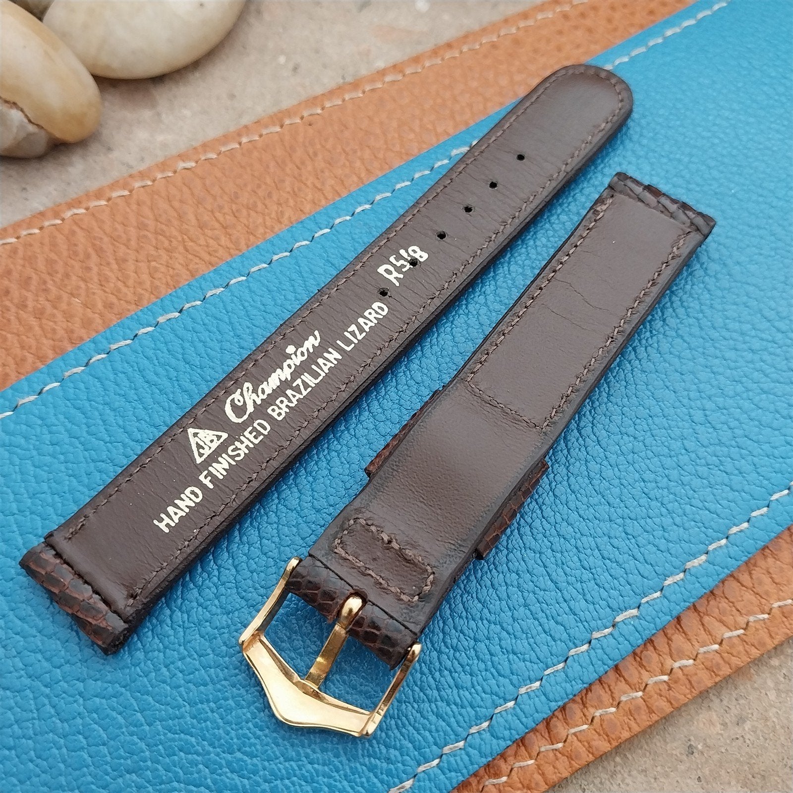 - NOS unused 1960s old-stock JB Champion stitched single keeper brown lizard watch band.