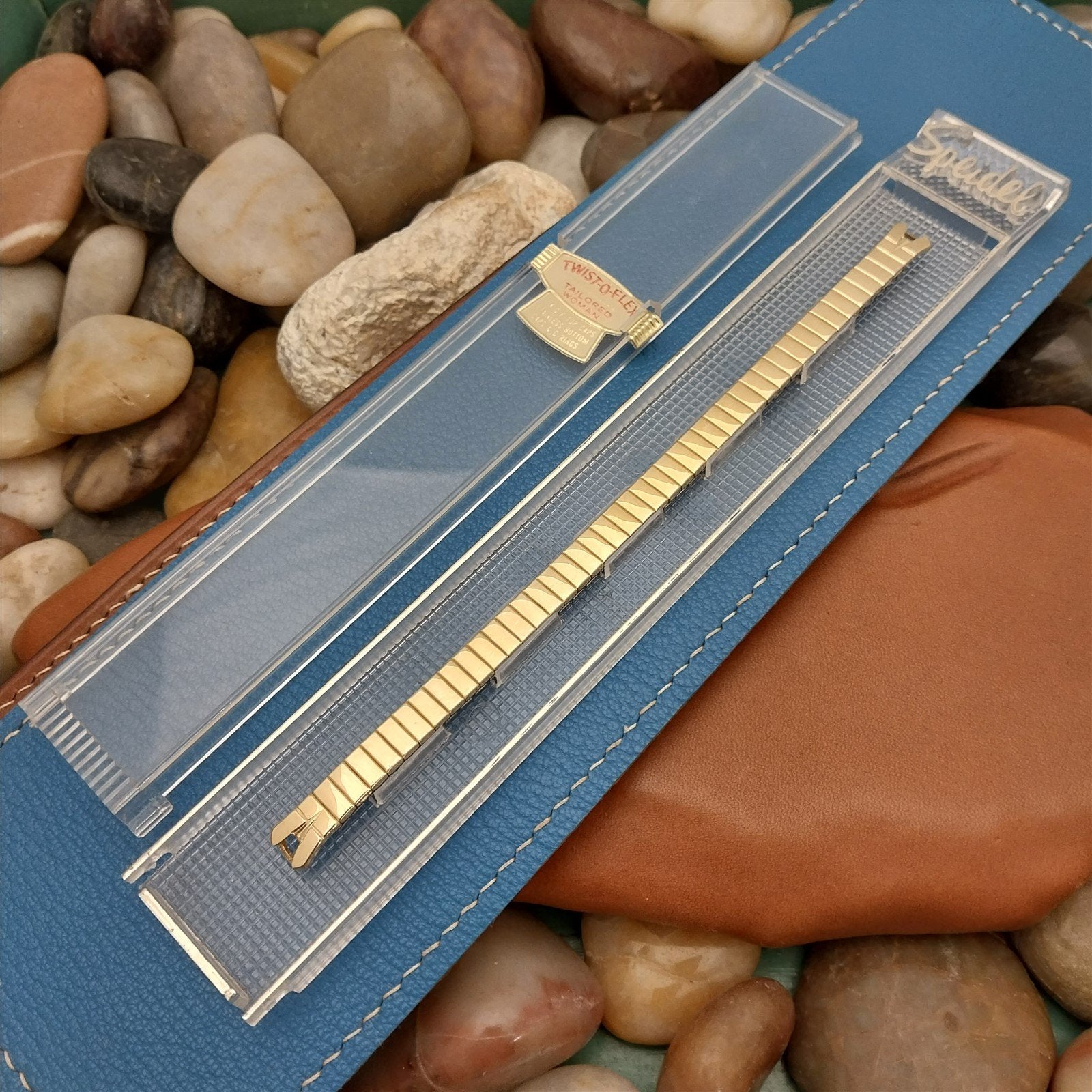 - NOS unused 1970s old-stock Speidel Tailored Woman 10k yellow gold-filled expansion cocktail watch bracelet.