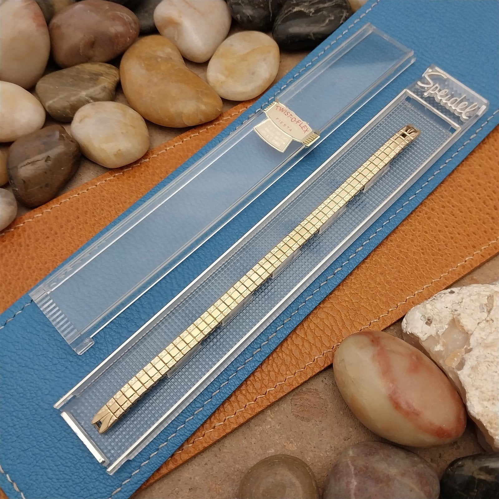 - NOS unused 1970s old-stock Speidel Fiesta 10k yellow gold-filled expansion cocktail watch bracelet.
