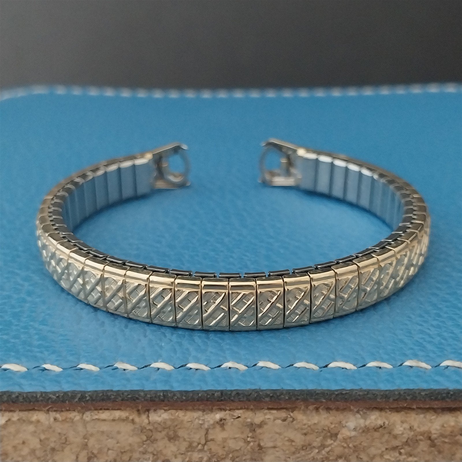 - NOS unused 1970s old-stock Speidel Twiston yellow rolled gold plate expansion cocktail watch bracelet.