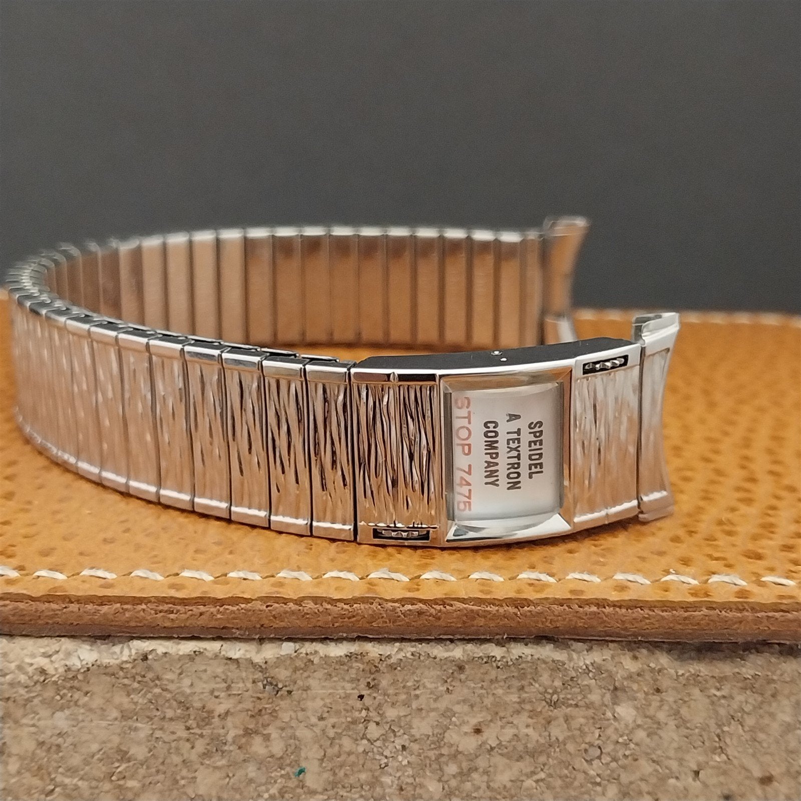 - NOS unused old stock 1970s Long Speidel Datefinder Valencia stainless steel expansion 1974/1975 calendar watch bracelet.