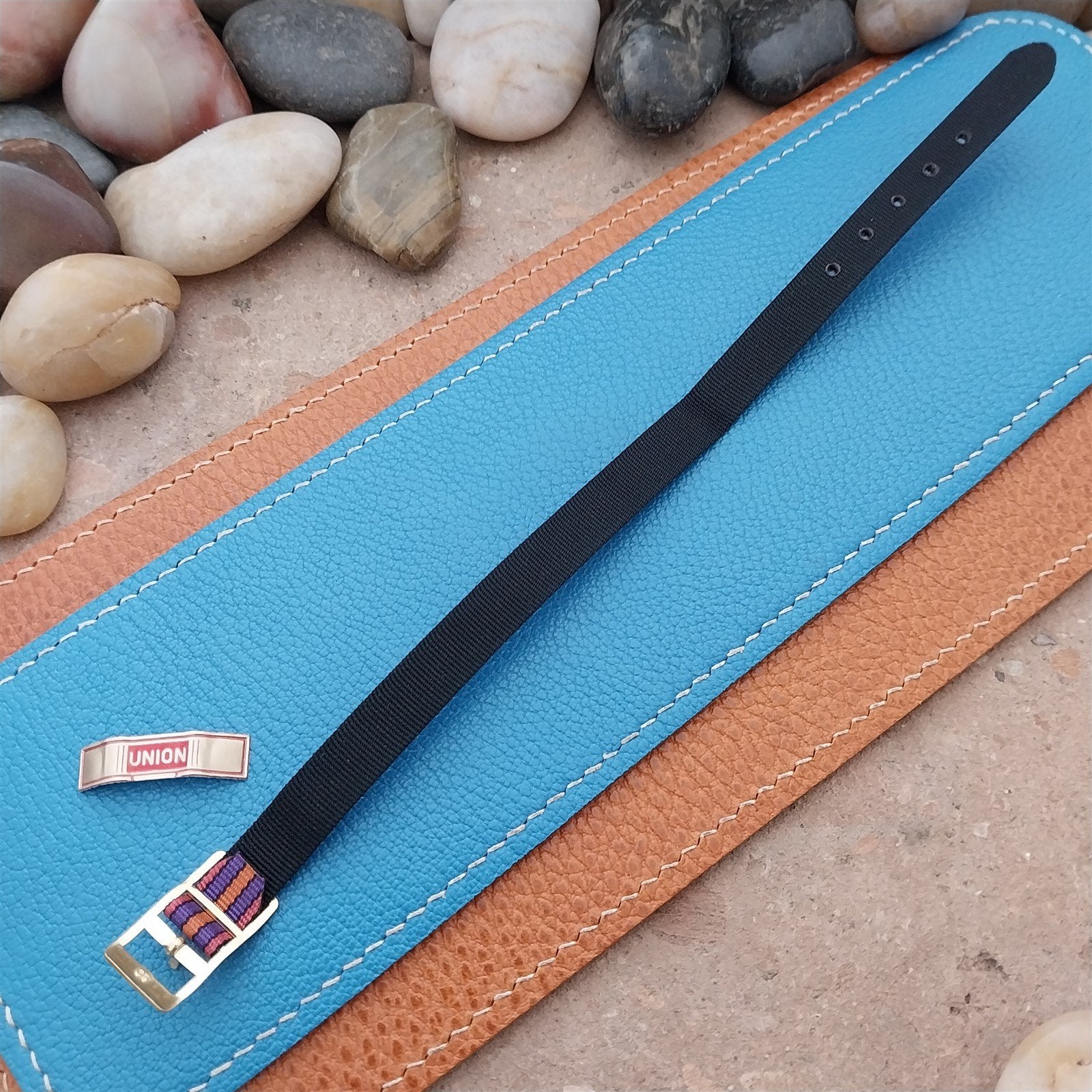 - NOS 1960s-1970s old-stock 1-piece purple orange pink & black Perlon field watch strap.