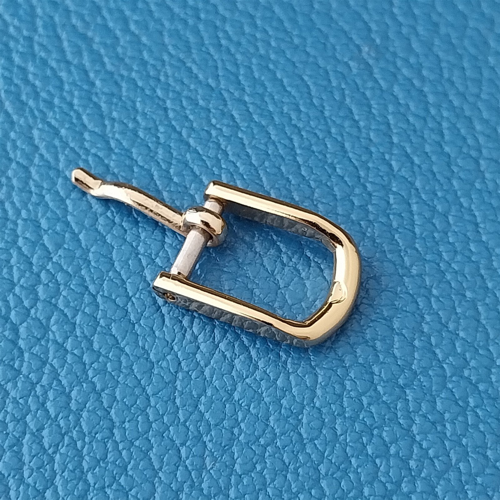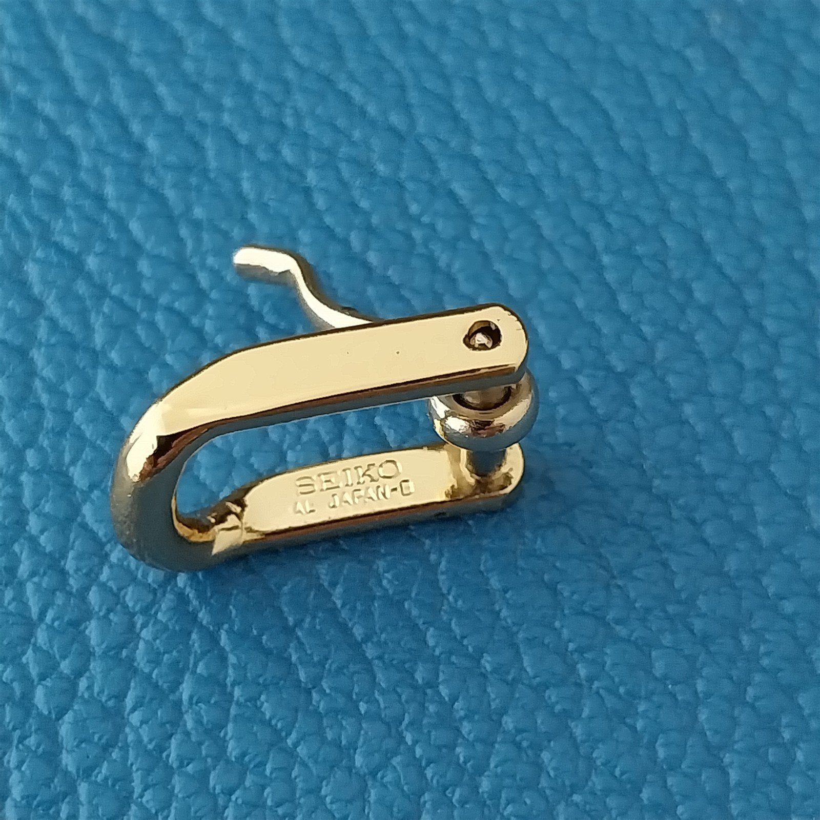 - NOS unused old stock yellow gold-tone Seiko logo watch strap buckle.