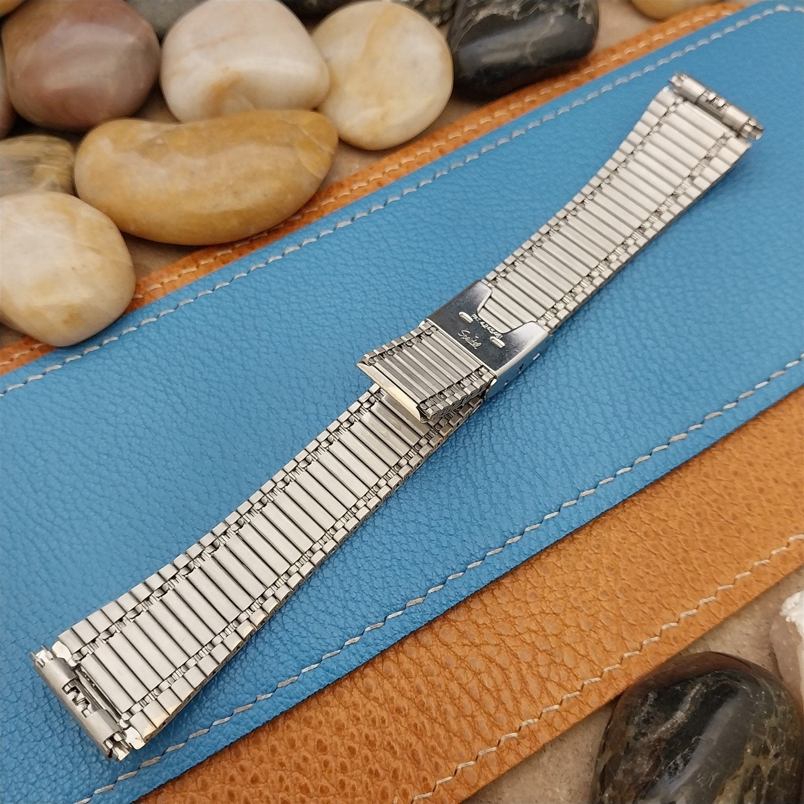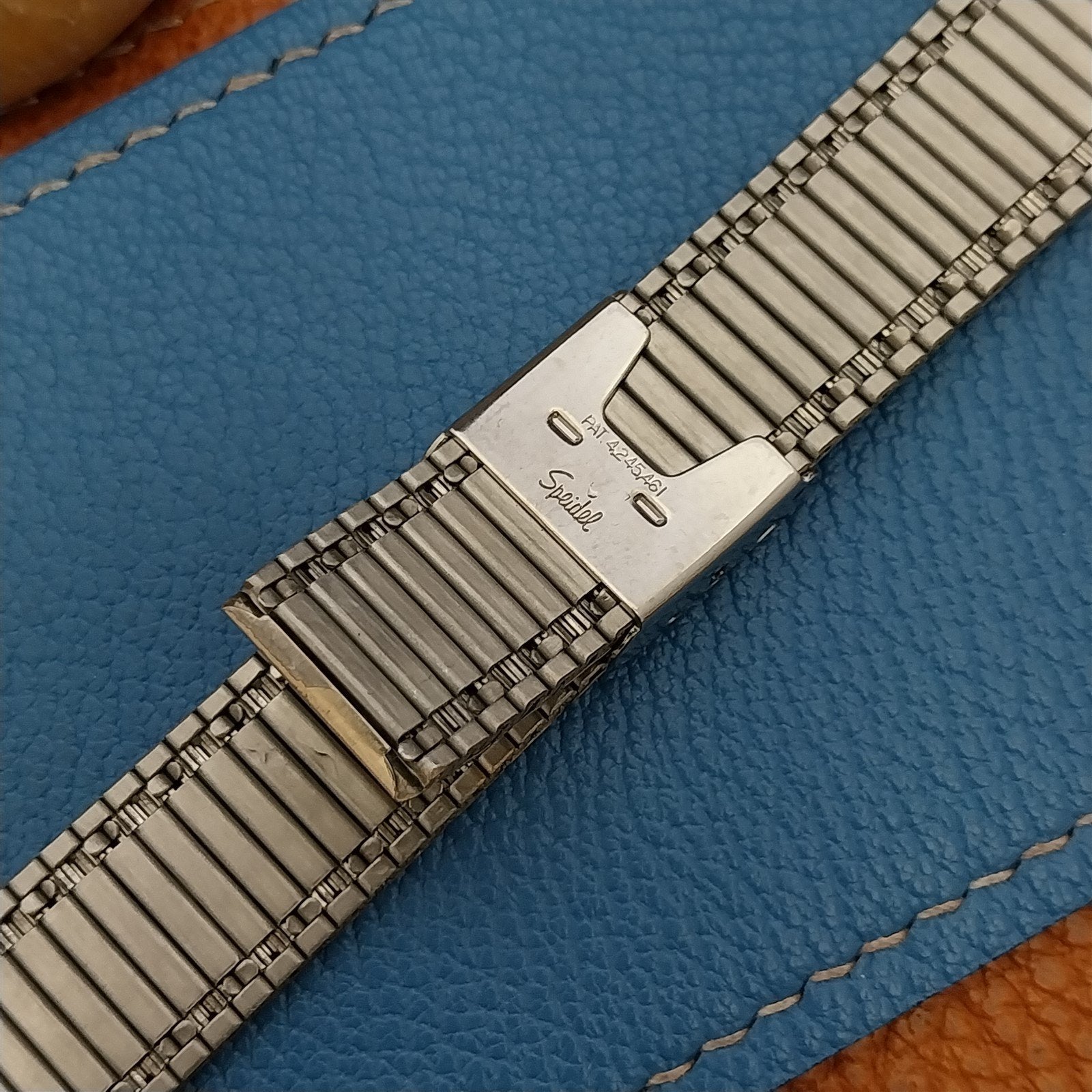 - NOS unused 1970s old-stock Speidel yellow gold-tone 2-piece watch bracelet.